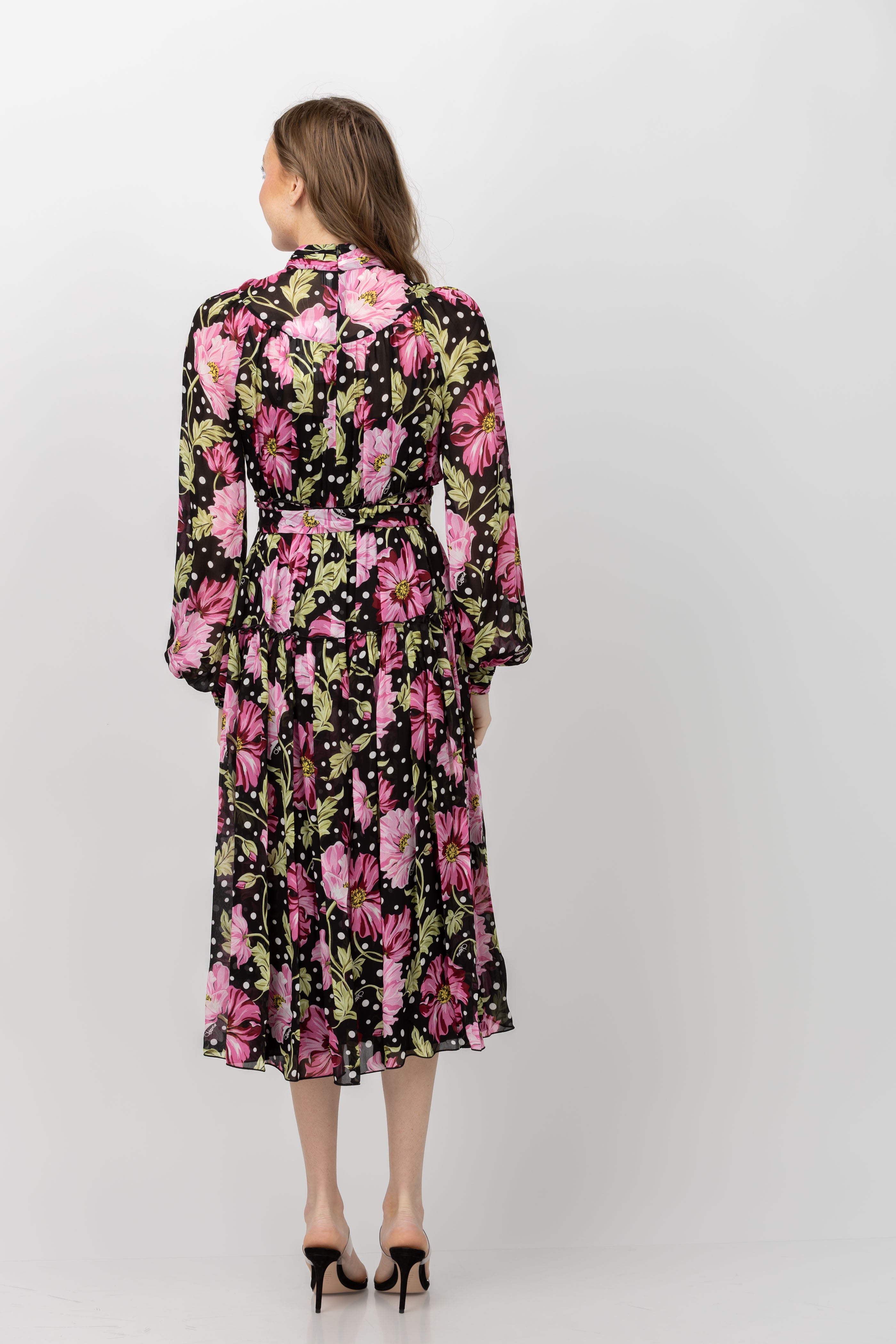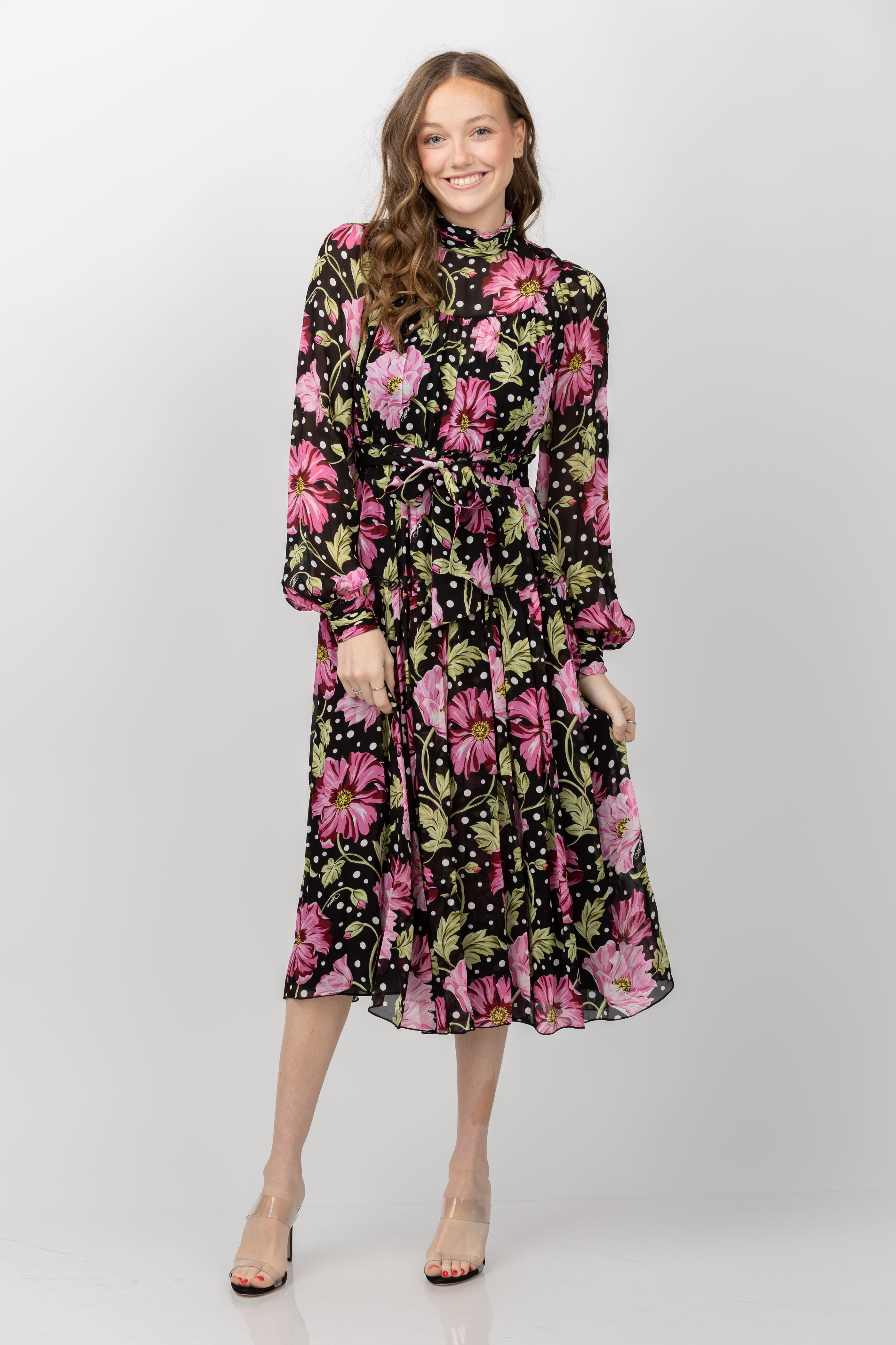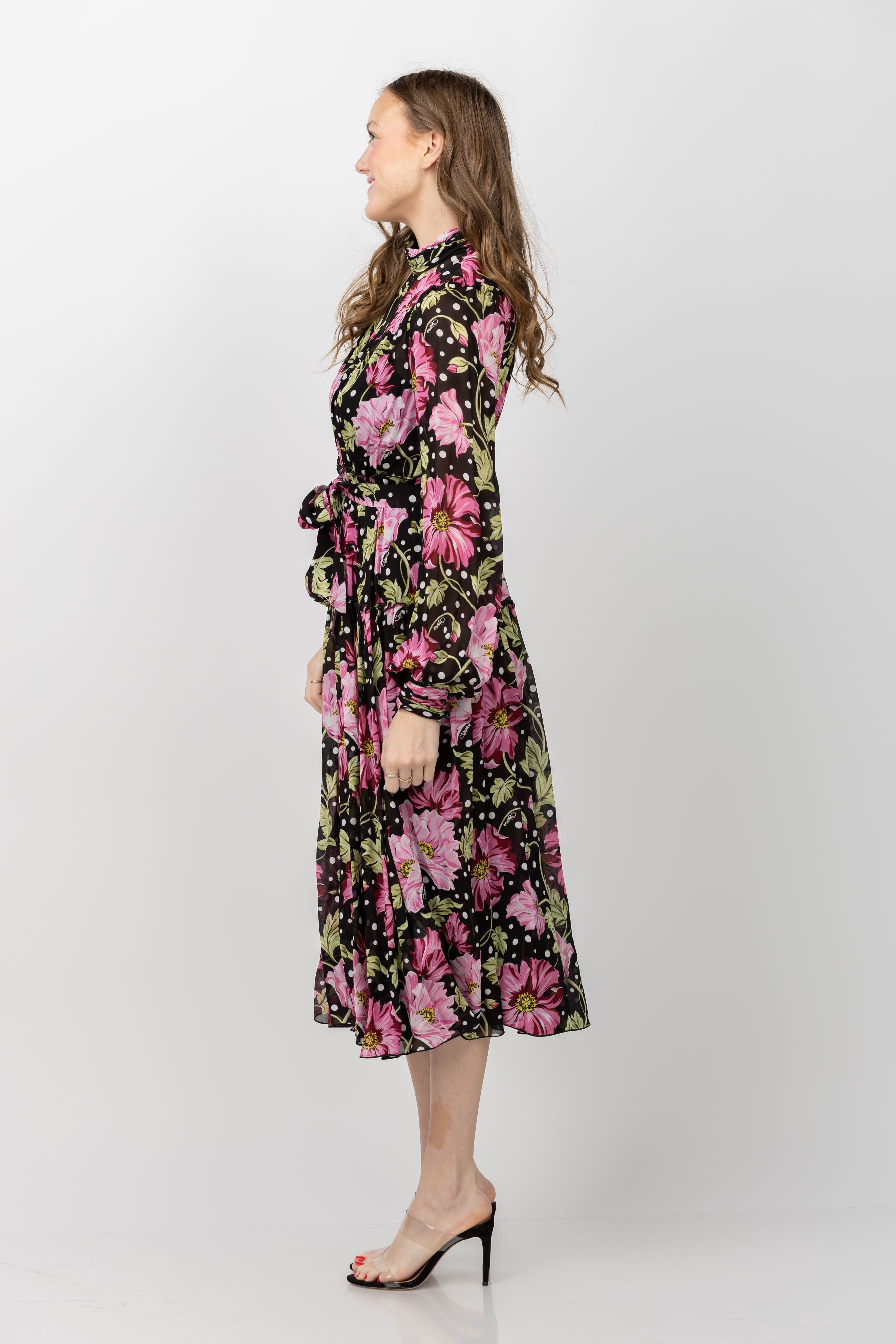 Elevate your style with the DVF Kent Dress in Hendrix Floral. Crafted from a soft chiffon, this midi dress exudes a romantic and airy aesthetic. With a high neckline, sheer sleeves, buttoned cuffs, and a full skirt, this dress is effortlessly elegant. Complete the look with the belted waist for a flattering silhouette.