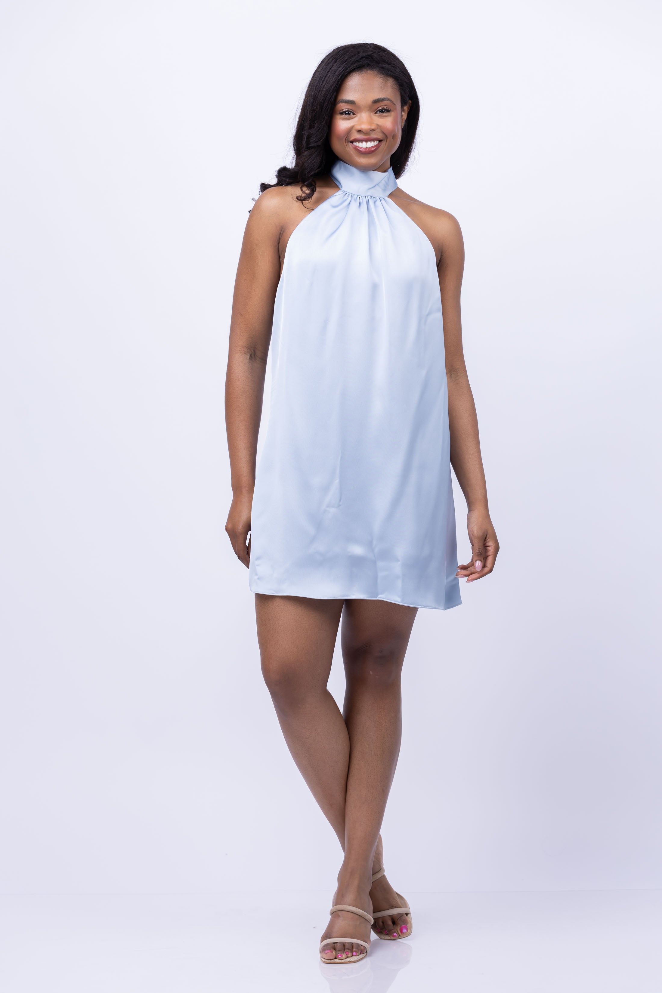 Ramy Brook Sam Halter A-Line Satin Minidress in Crystal Blue