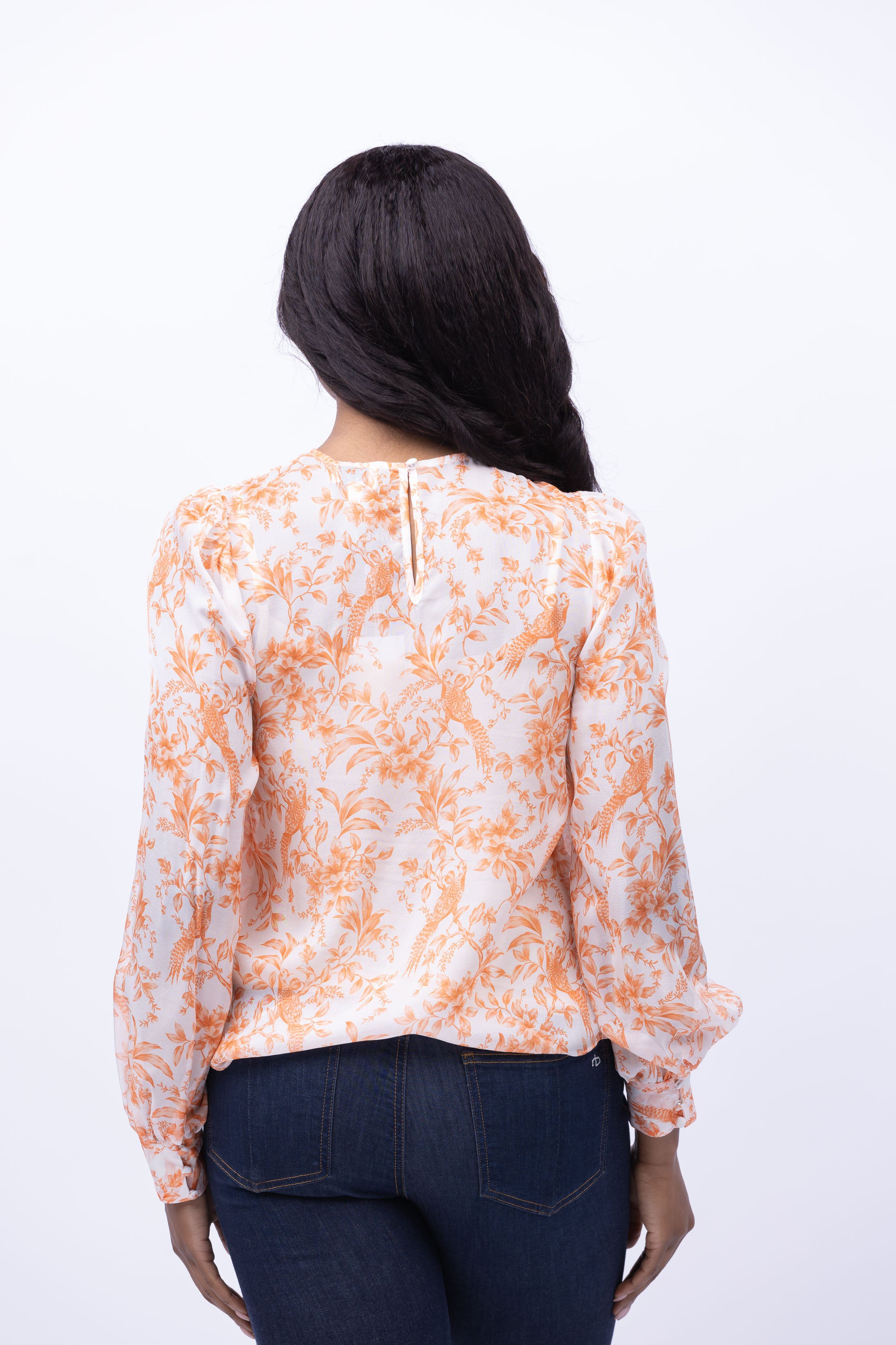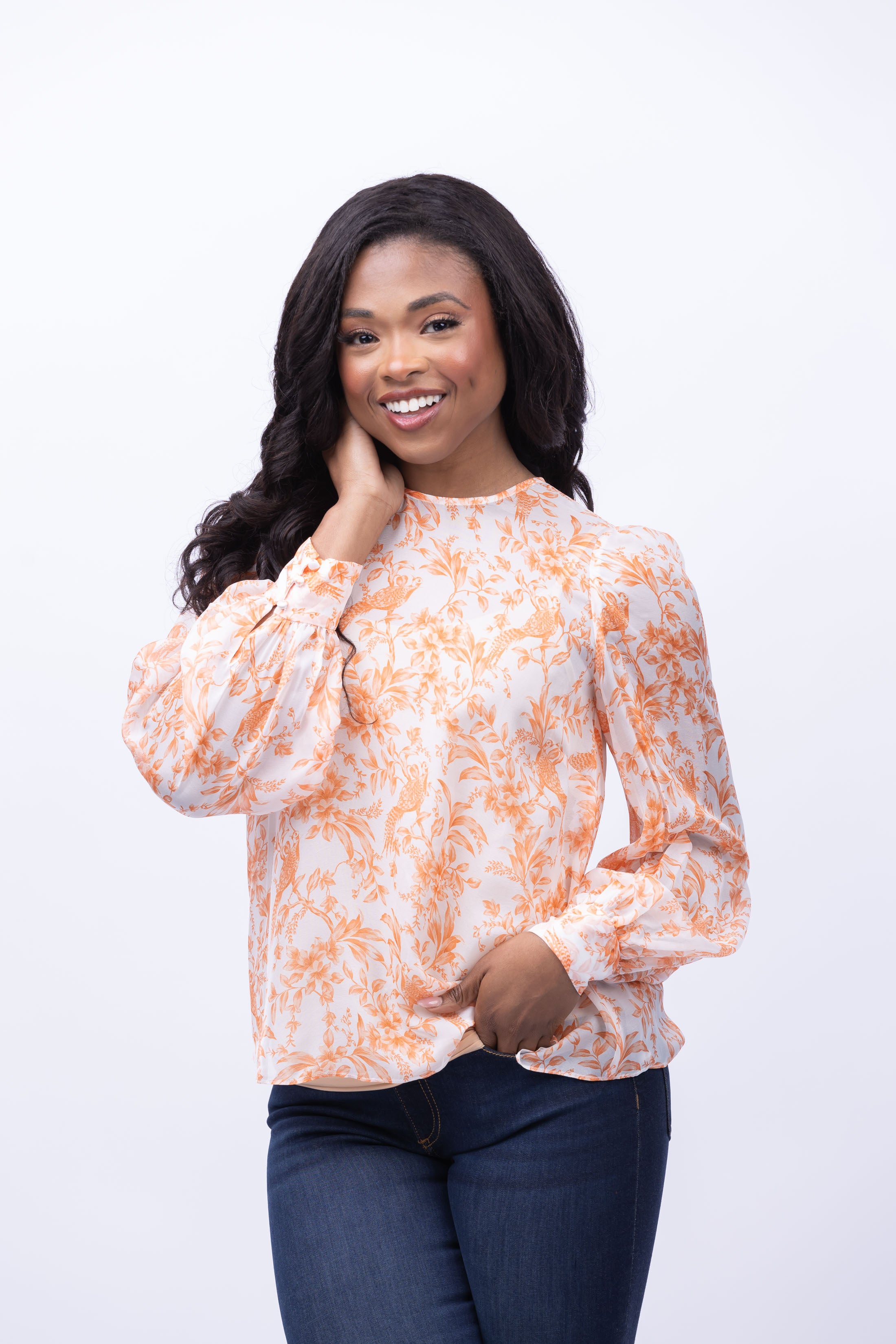 Add a pop of color to your wardrobe with our Cami Nyc Analys Top in Papaya Toile! Featuring a vibrant orange and white print, this long sleeve top is perfect for any occasion, whether it's the office or a dinner out. Elevate your style with this versatile and eye-catching piece!