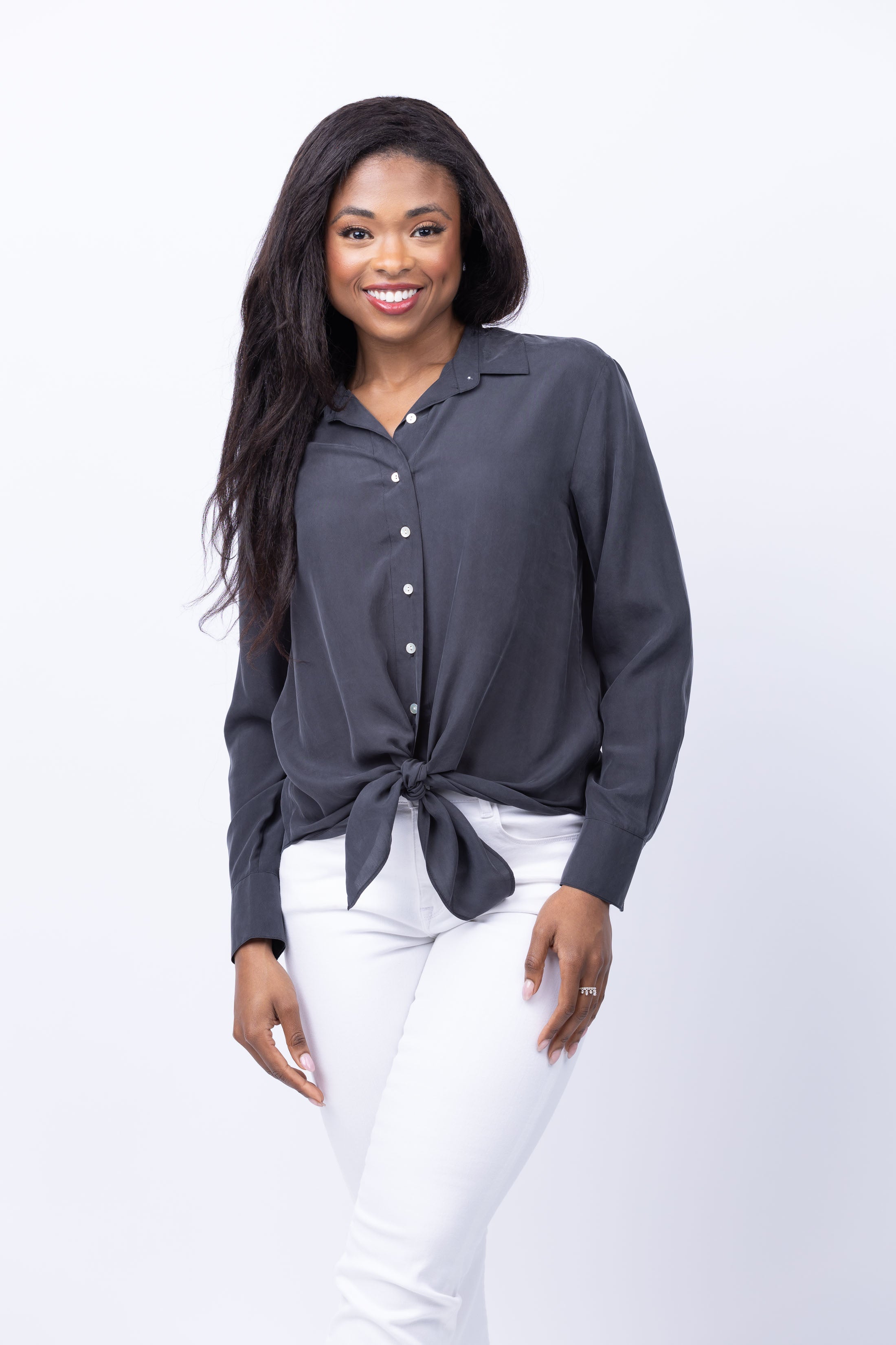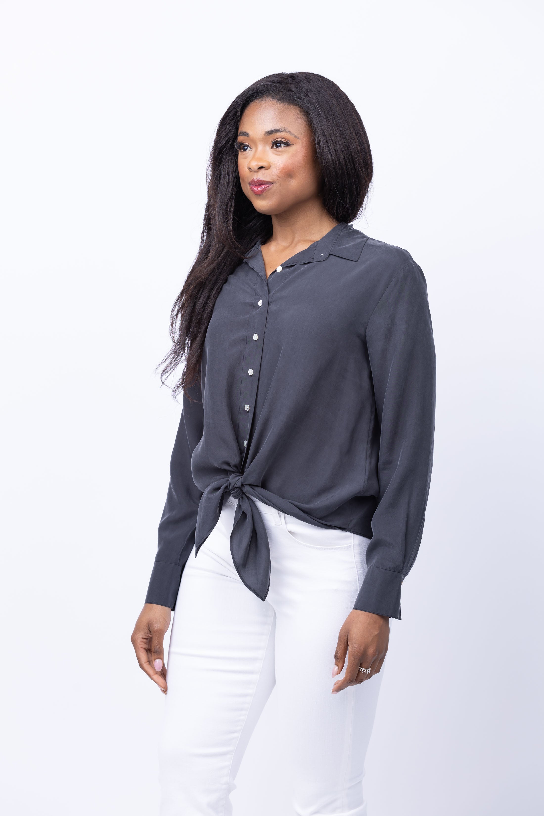 The ultimate wardrobe staple - the button down shirt - now updated with a stylish tie front detail. Effortless and essential, this forever-favorite shirt will step up season-after-season.