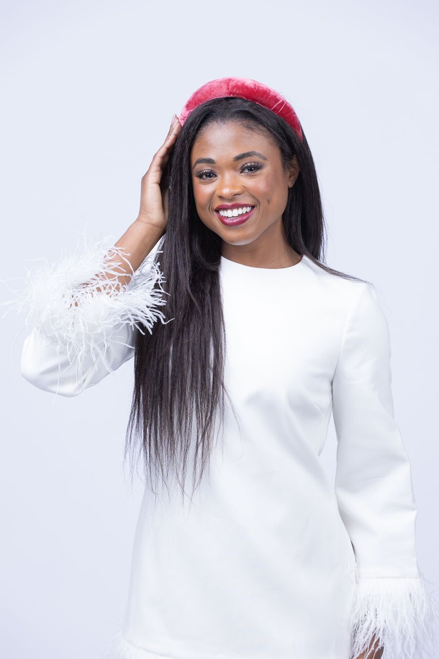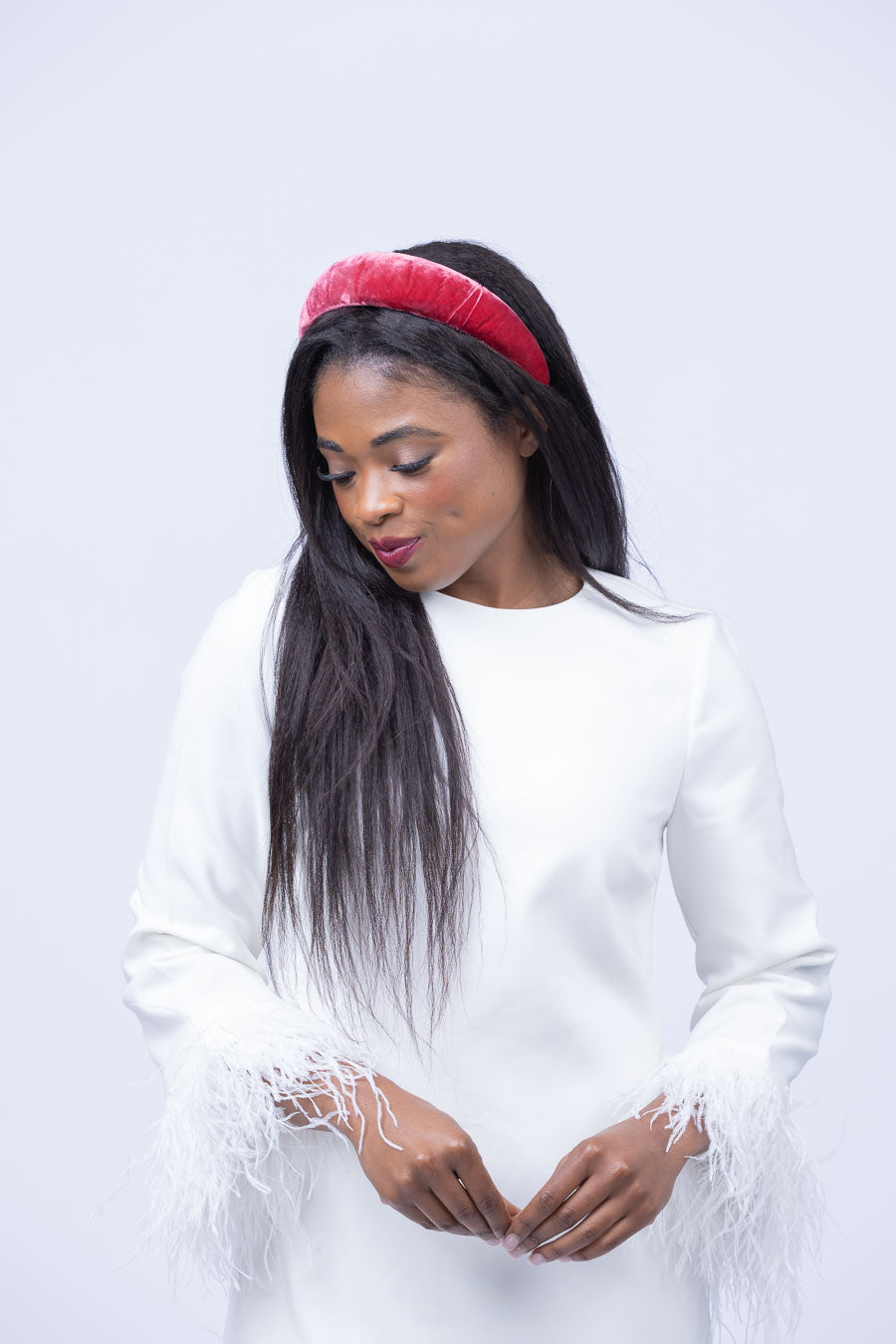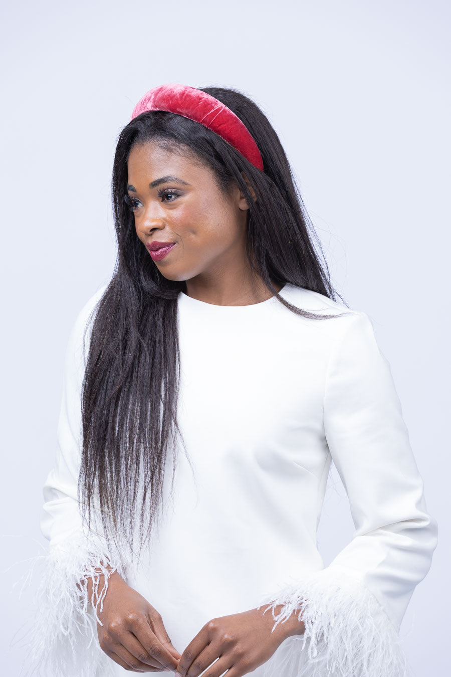Up your festive look with this Loeffler Randall headband! In luxurious tea rose velvet, the show-stopping headband will take your wardrobe to an elevated realm of feminine glamour. It's the perfect eye-catching touch that will take your ensemble to the next level!