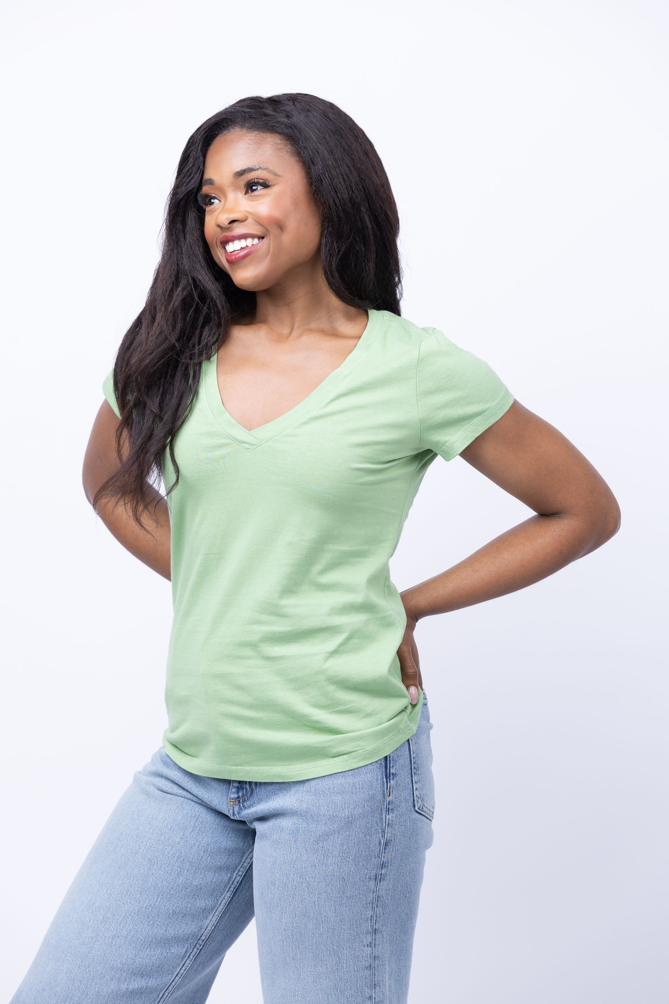 Elevate your casual wardrobe with the Maven West Short Sleeve V-Neck Top in Lime! This staple tee with a color twist features a flattering v-neck design that pairs perfectly with denim shorts or jeans. Add a pop of color to your outfit and effortlessly elevate your style.