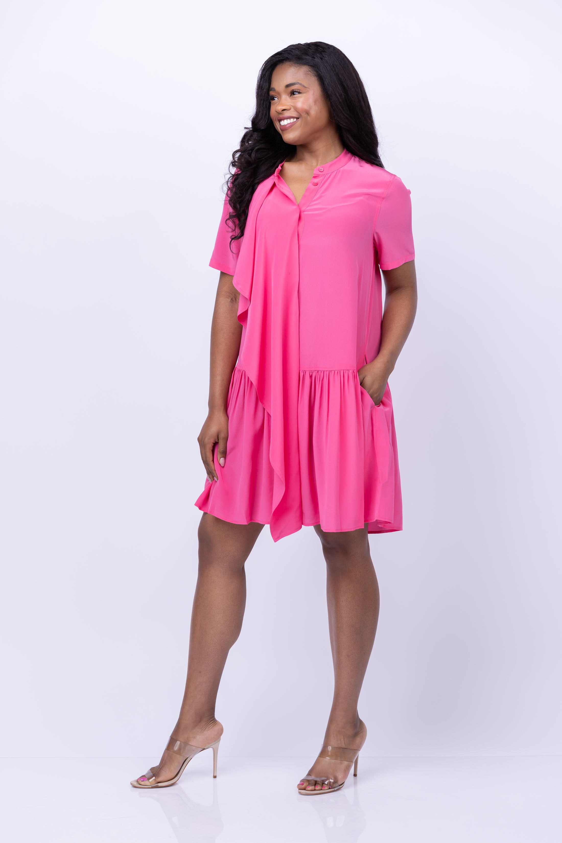 Elevate your wardrobe with our Ulla Johnson Adalyn Dress in Fuchsia. Made from luxurious silk crepe de chine, this dress boasts a vibrant electric pink hue and a flattering short-sleeve mini silhouette. The lightweight, scarf-like draping and gathered drop waist add effortless elegance, while the front button closure adds a touch of sophistication. Make a statement and turn heads in this bold yet chic dress!