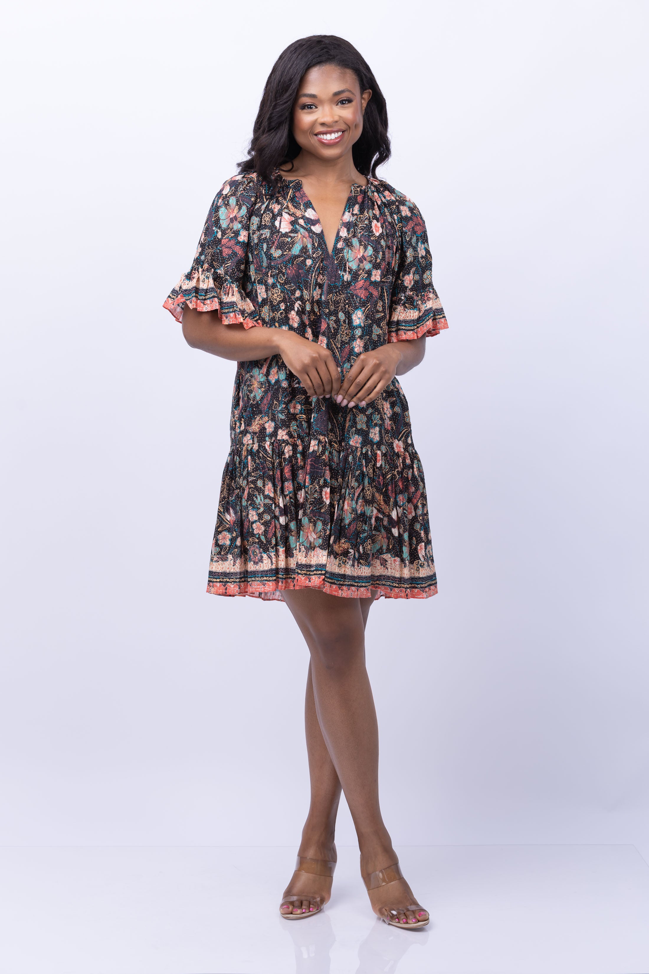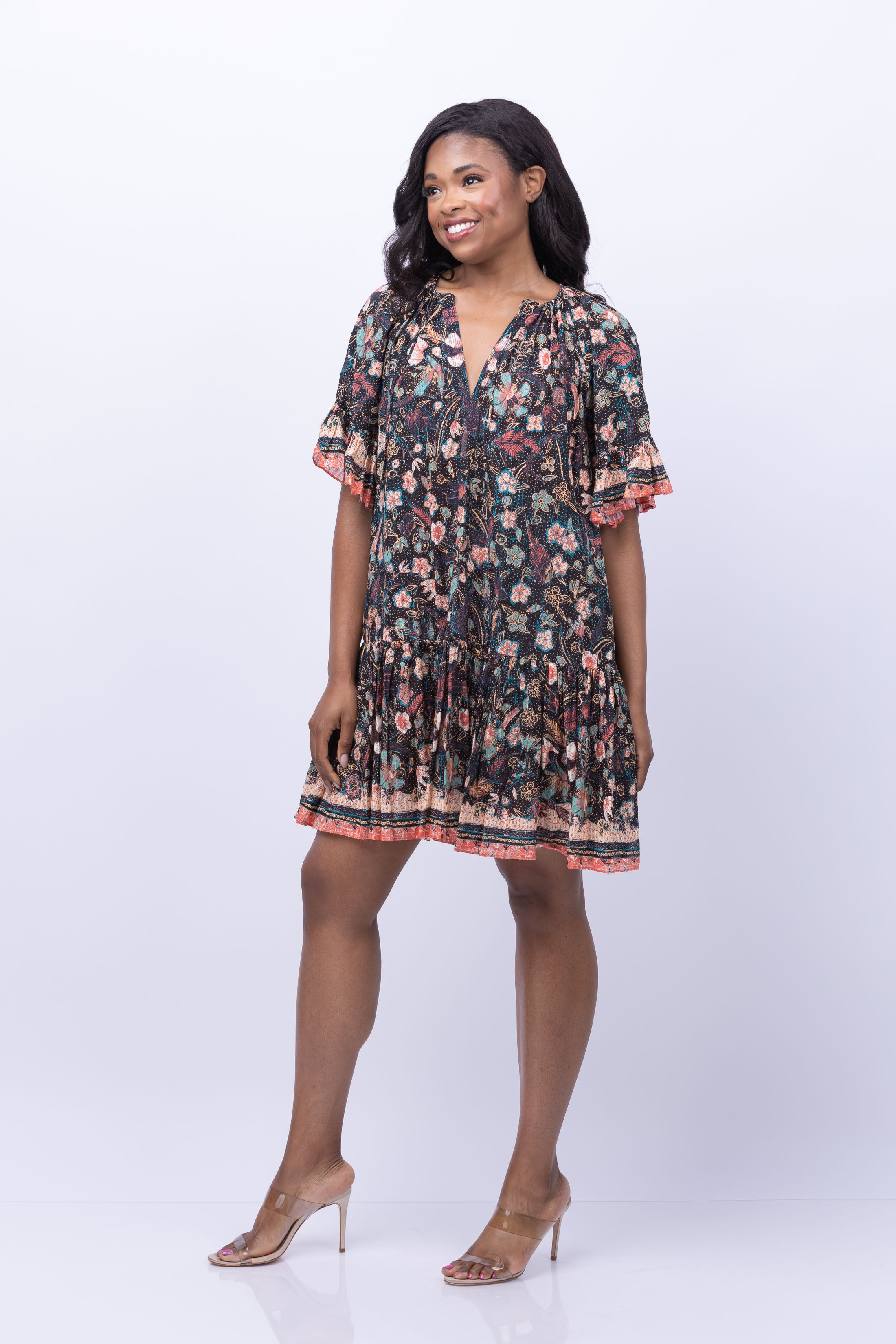Flouncy and feminine, the Ulla Johnson Malie Dress in Obsidian effortlessly transitions from day to night. Flutter sleeves add a touch of whimsy to this versatile piece, perfect for pairing with sandals for a casual day look or dressing up with wedges for a night out.