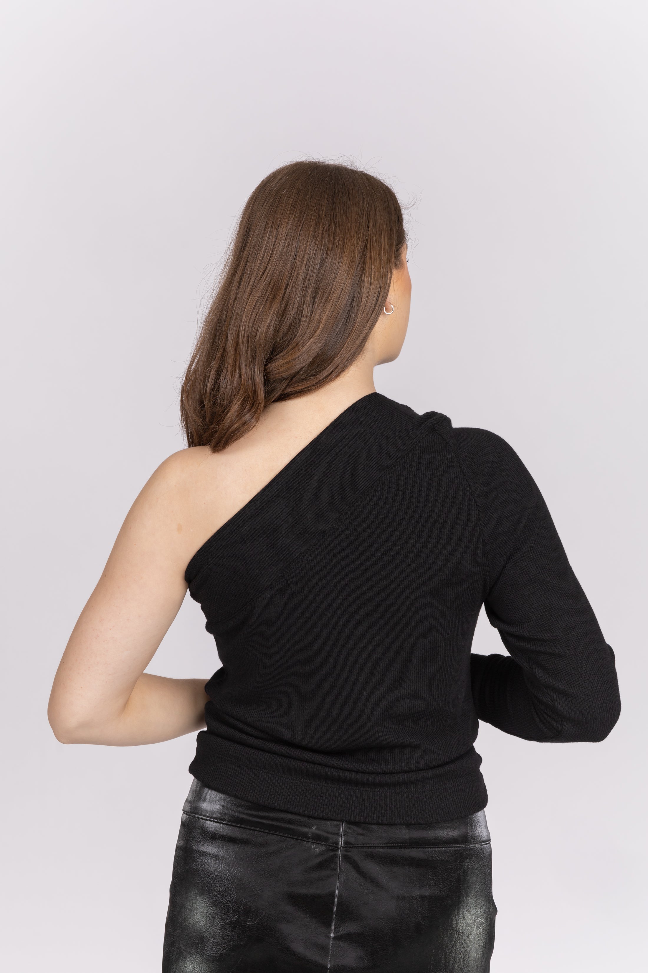 Enza Costa One Shoulder Rib Knit Top in Black