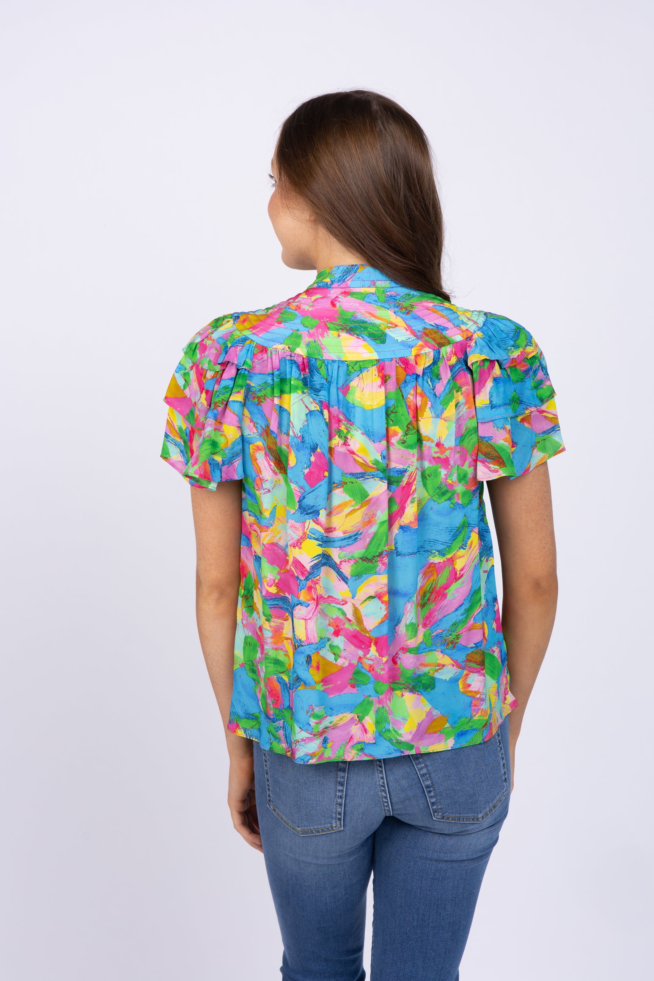 Gilner Farrar Dray Blouse in Brushstroke Floral