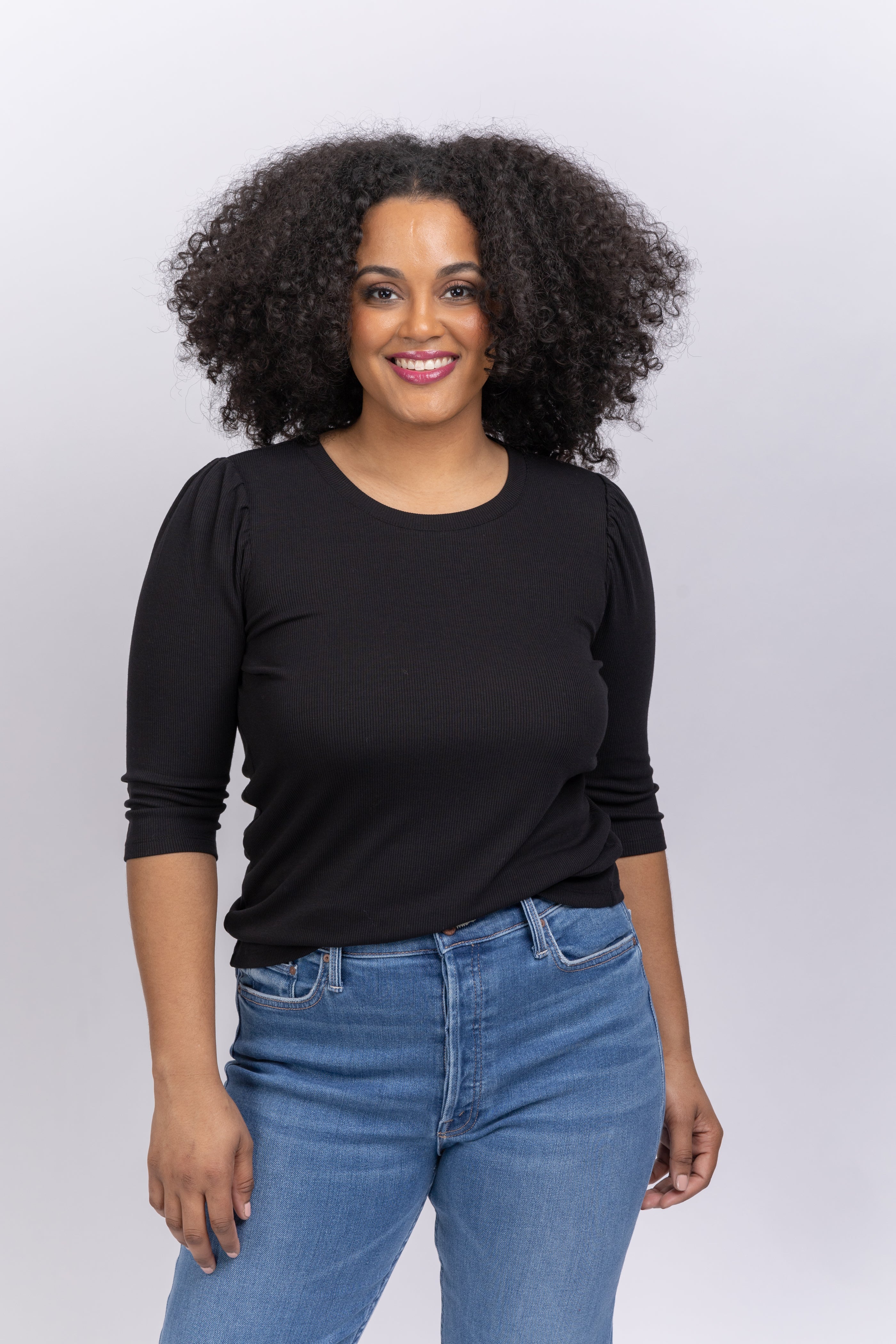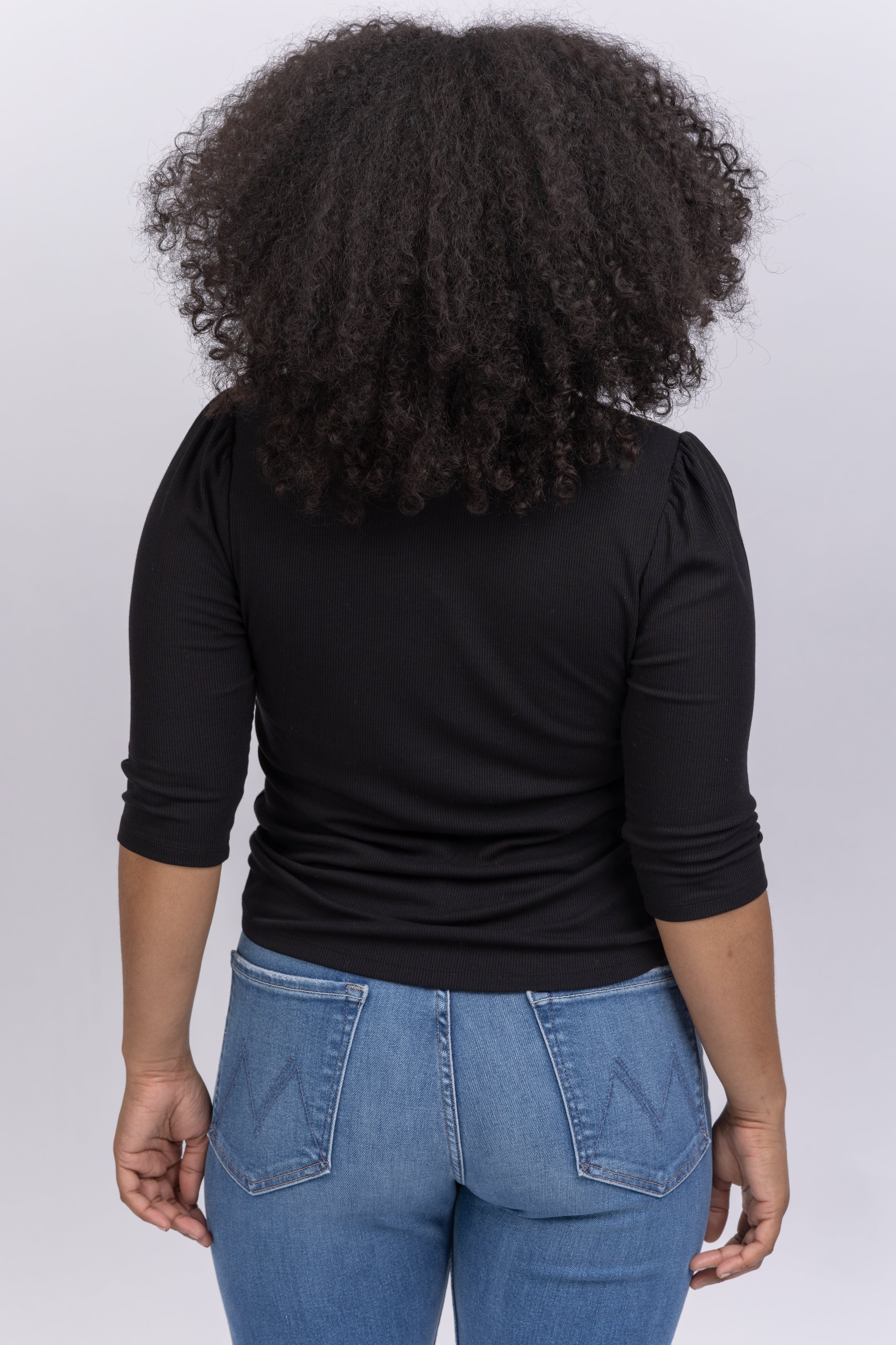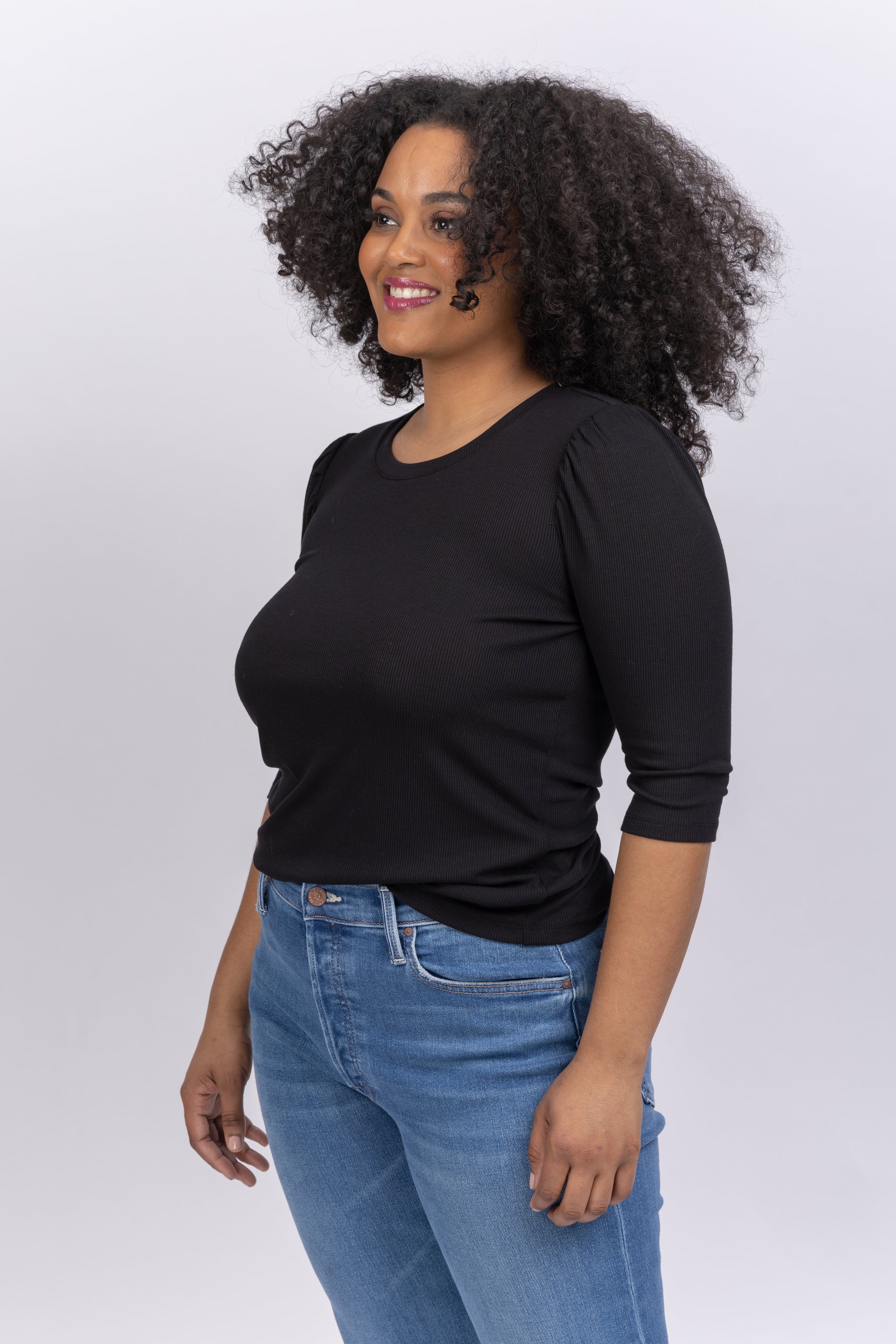 Nic+Zoe Drapey Rib Puff Sleeve Tee Black Onyx