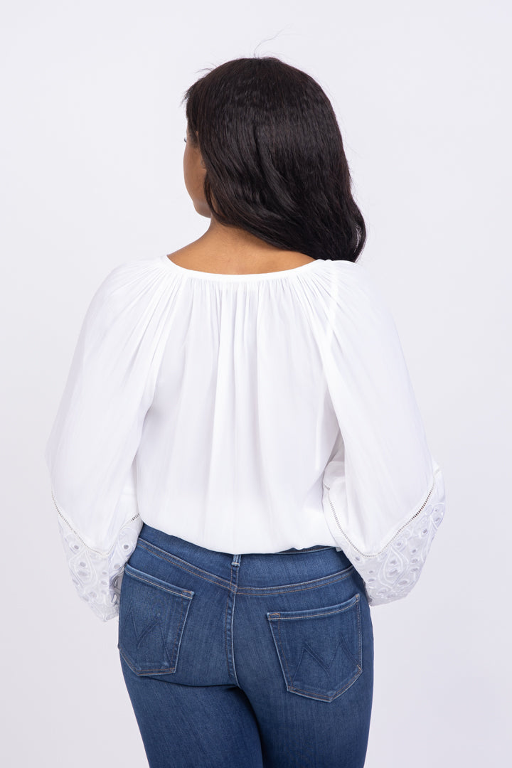 Ramy Brook Aleya Eyelet-Sleeve Peasant Top Ivory