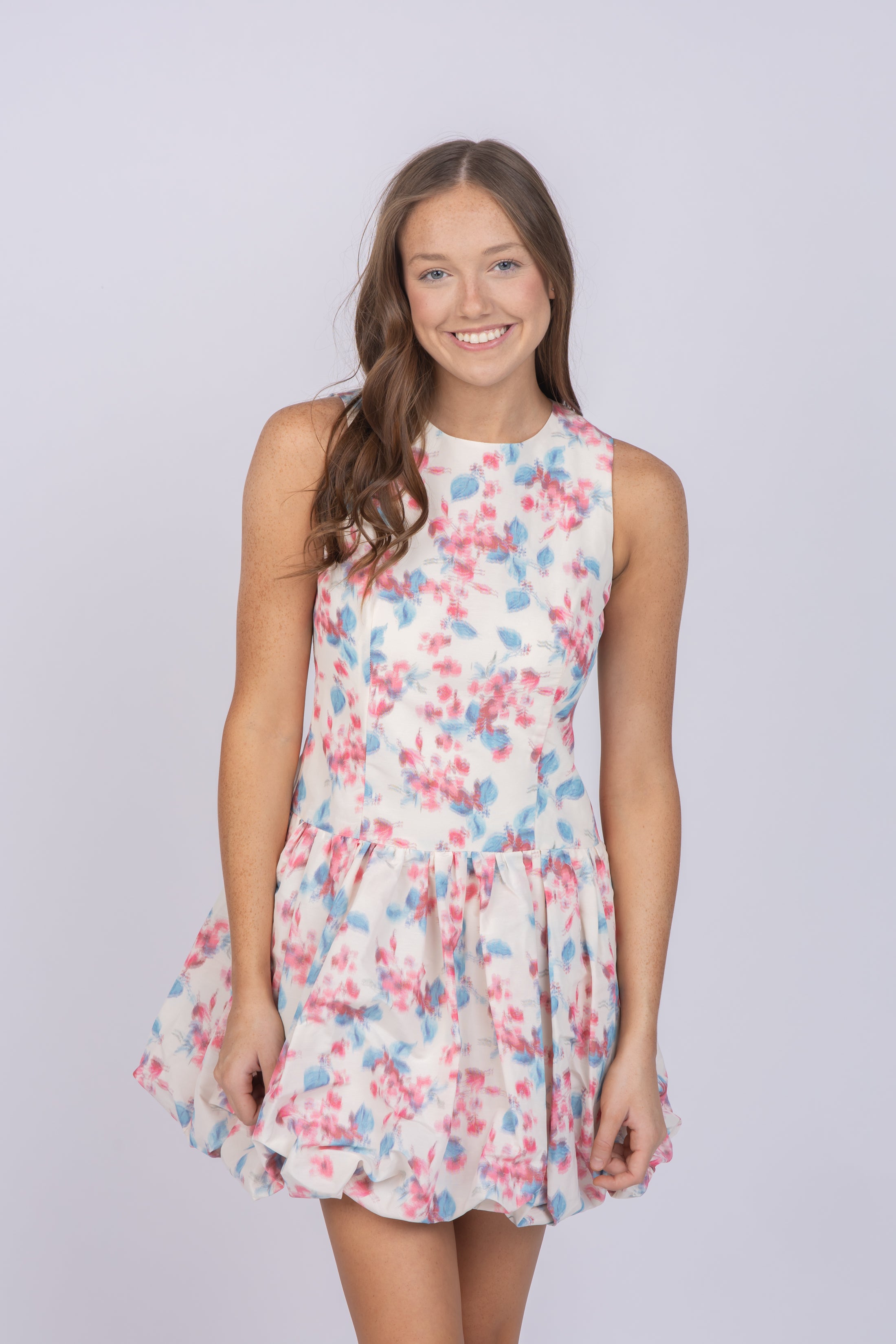 Turn heads in Shoshanna's Raffaella dress! Crafted of luxurious taffeta and bursting with painterly floral prints, it's sure to be your go-to statement piece. The pleated bubble hem is the perfect finishing touch to this beautiful and unique design. Make a lasting impression in this vibrant Lapis/Blush Multi dress!