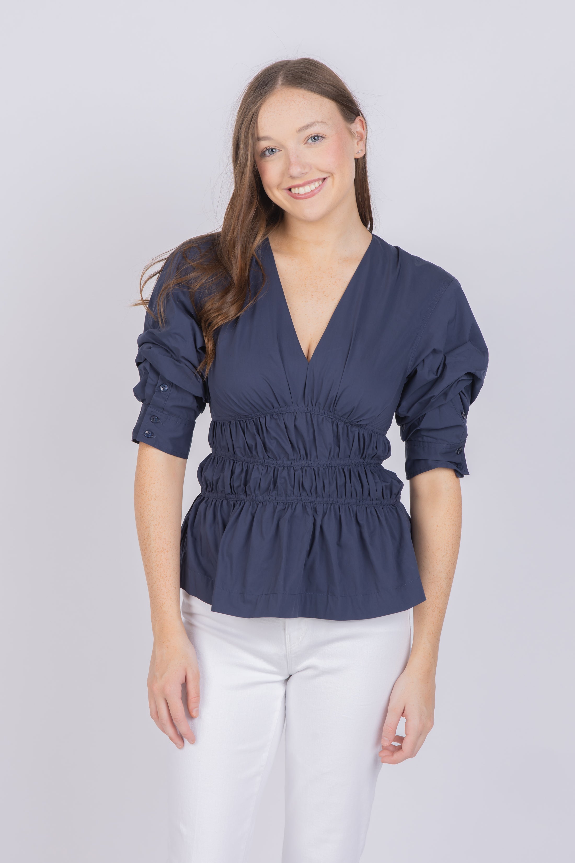 How do you elevate your wardrobe? Look no further than the Simkhai Yunni Top in Midnight. Featuring a classic silhouette with a modern twist, this top is sure to make heads turn with its eye-catching flair! Crafted with joy and style, it's sure to be a staple in your wardrobe!