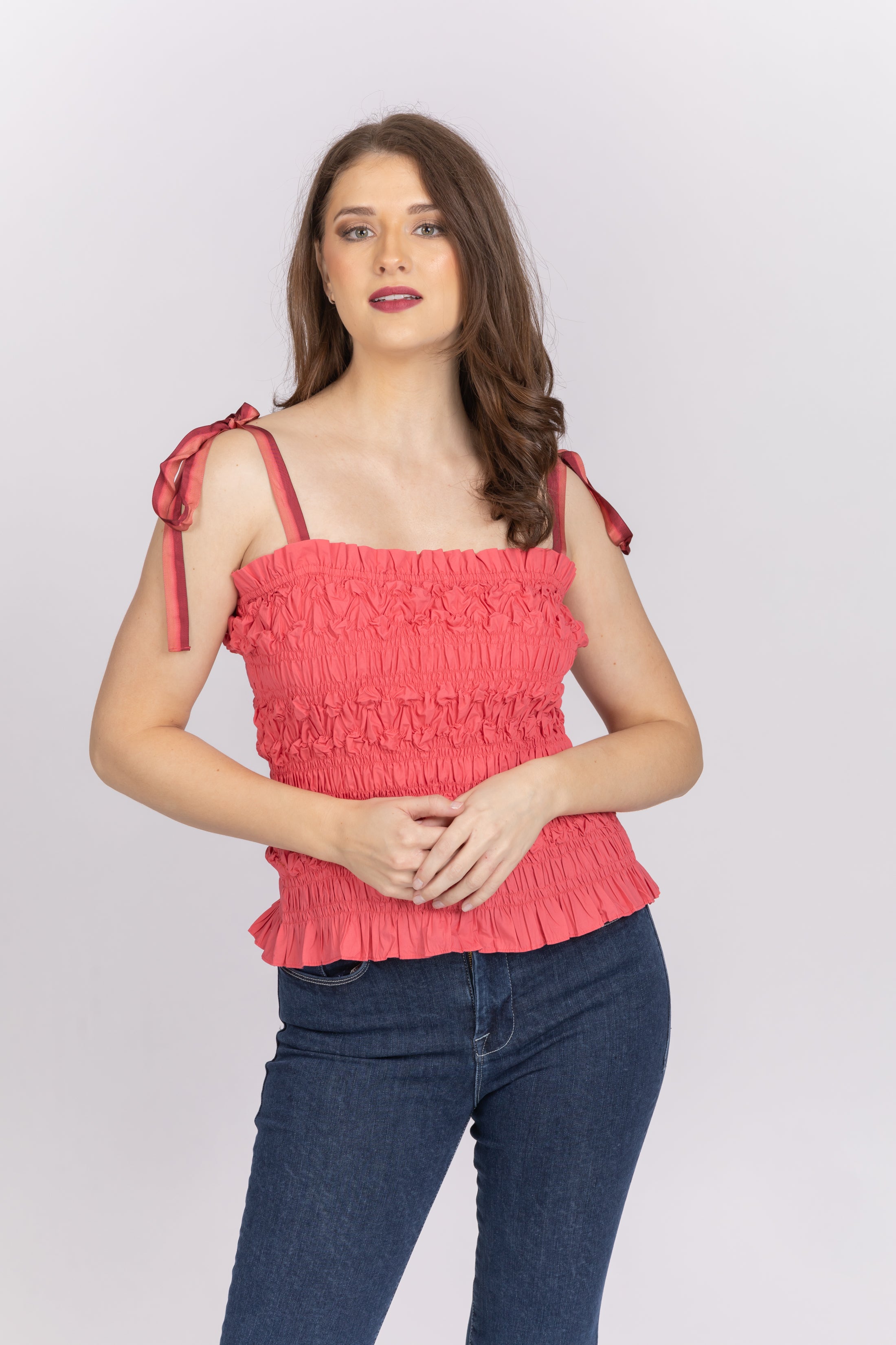 The Ayan Top is made in hand-dyed diamond shibori, a process that involves binding and folding the fabric before dying it. This smocked top features barely-there shoulder straps and a delicately ruffled neckline.