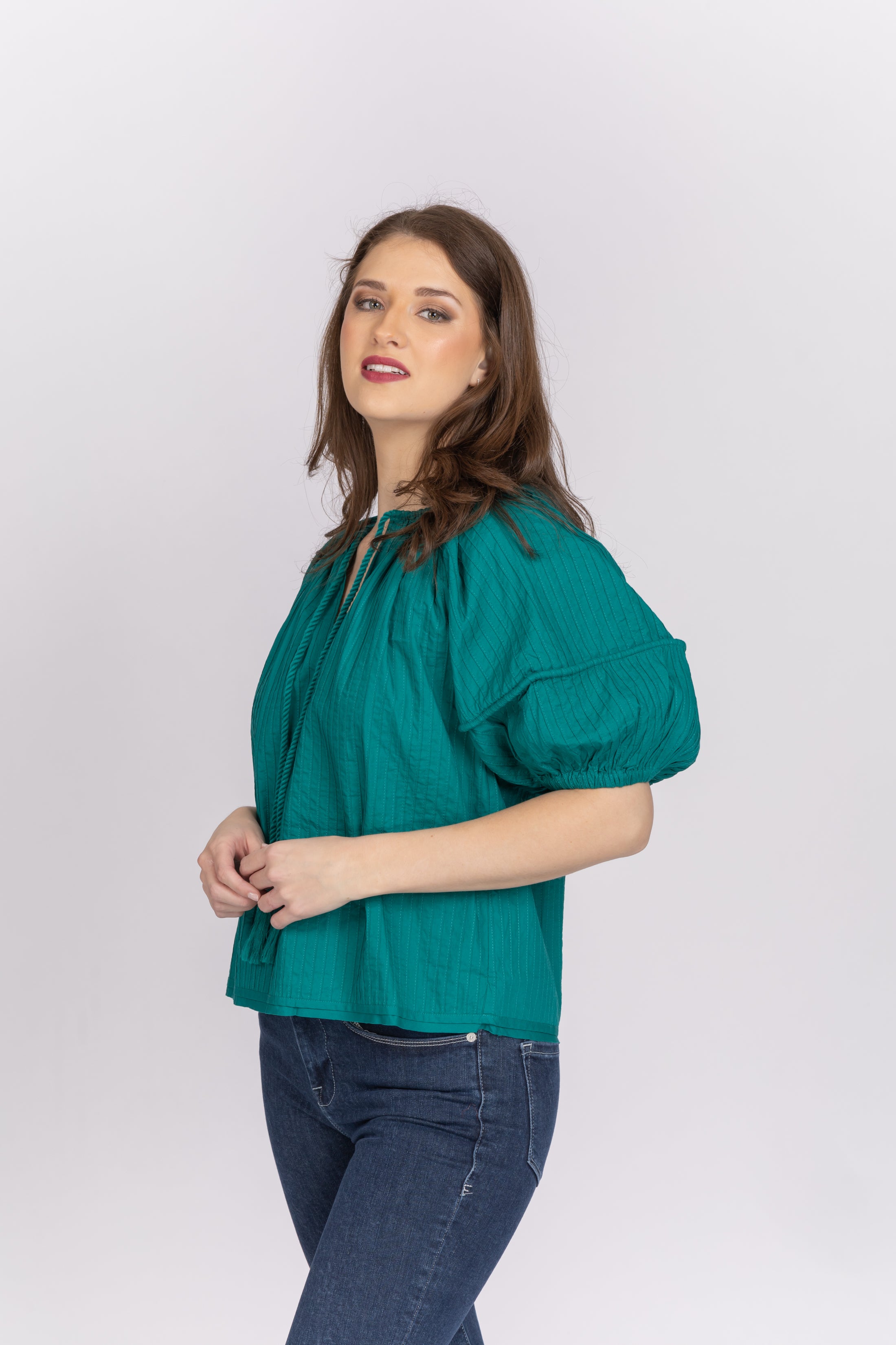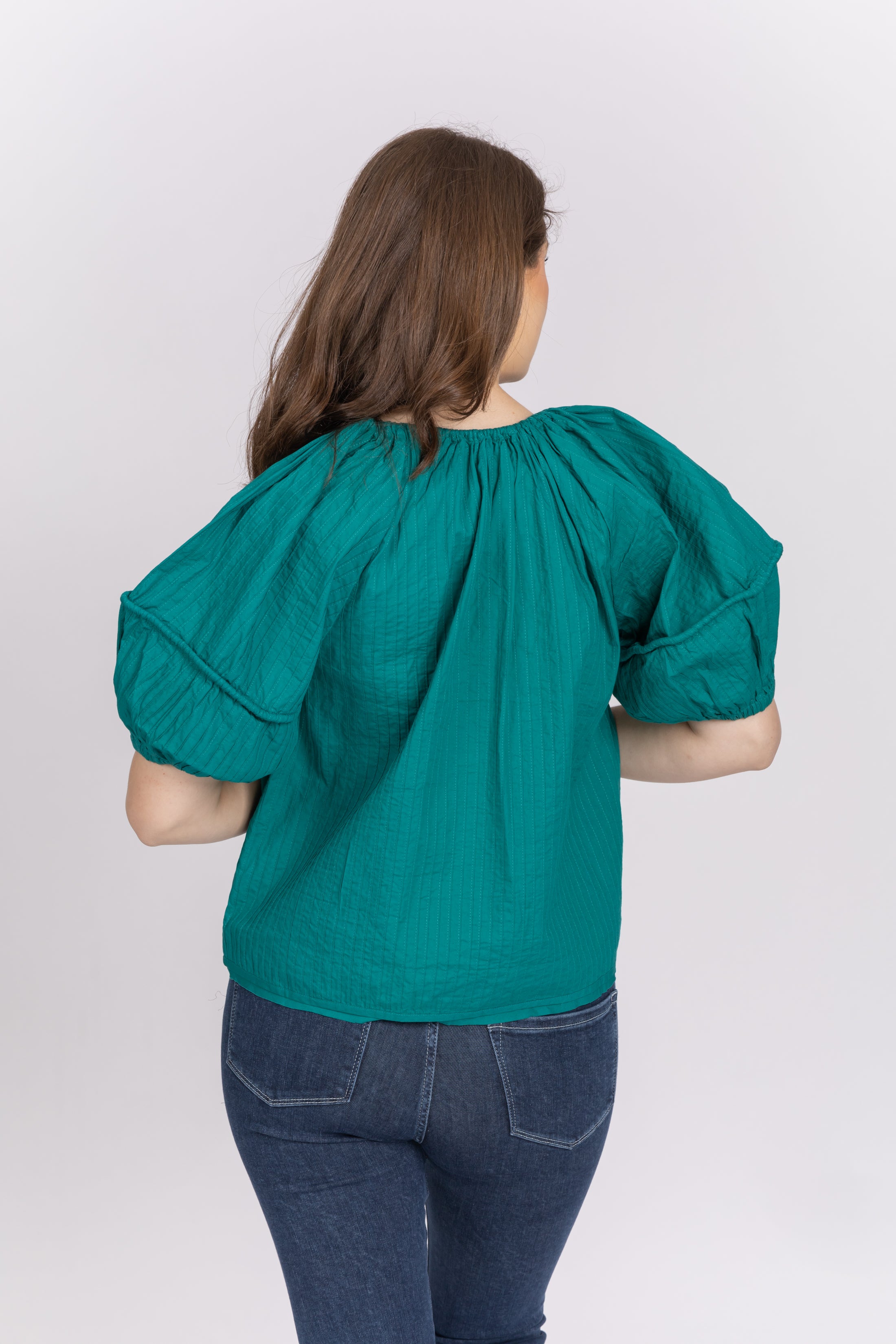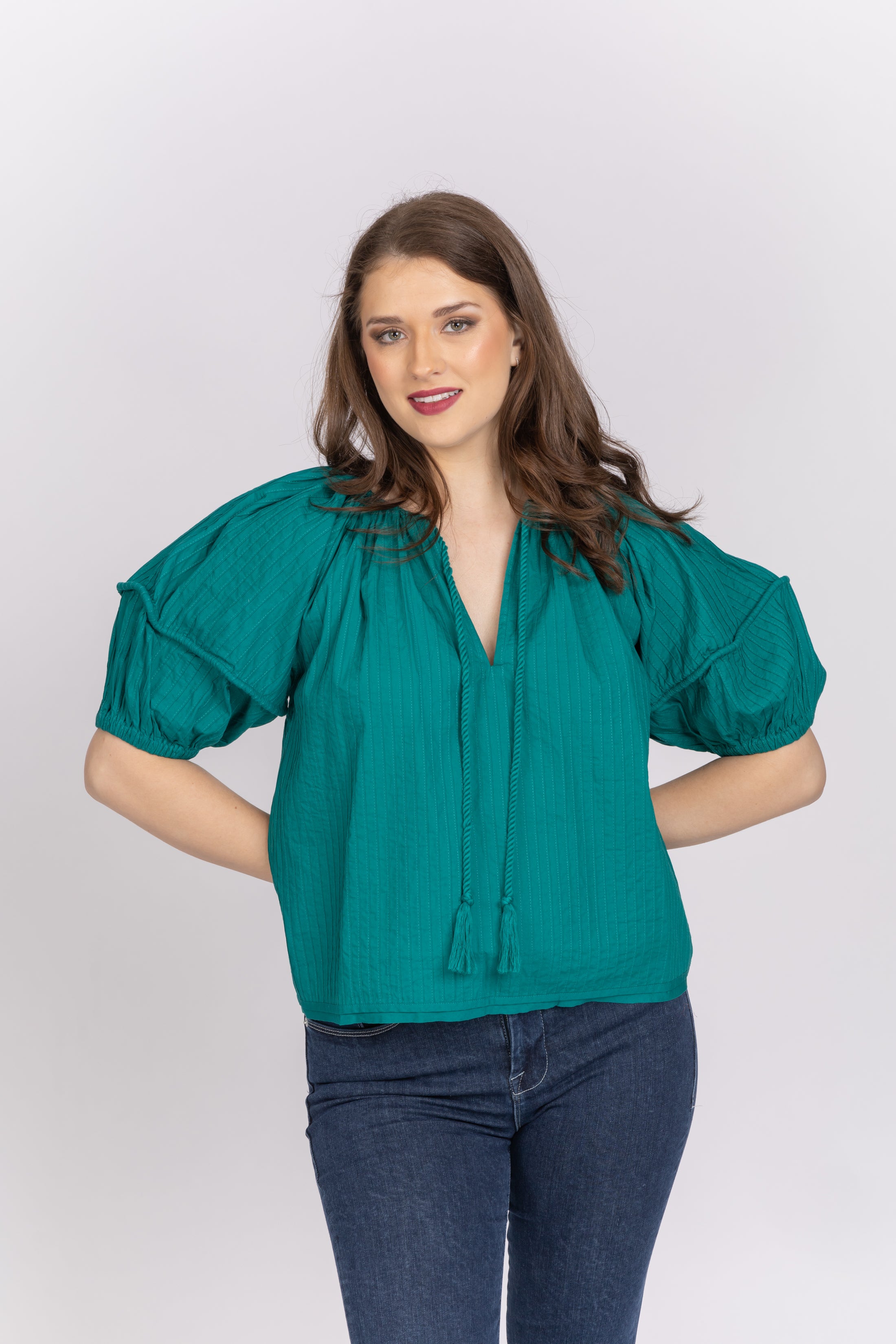 The Laurenza Top is made from Ulla Johnson signature cotton poplin that has been decorated with tiny pintucks to add both texture and subtle structure. This classic top features short puff sleeves, split neckline and an airy bodice.