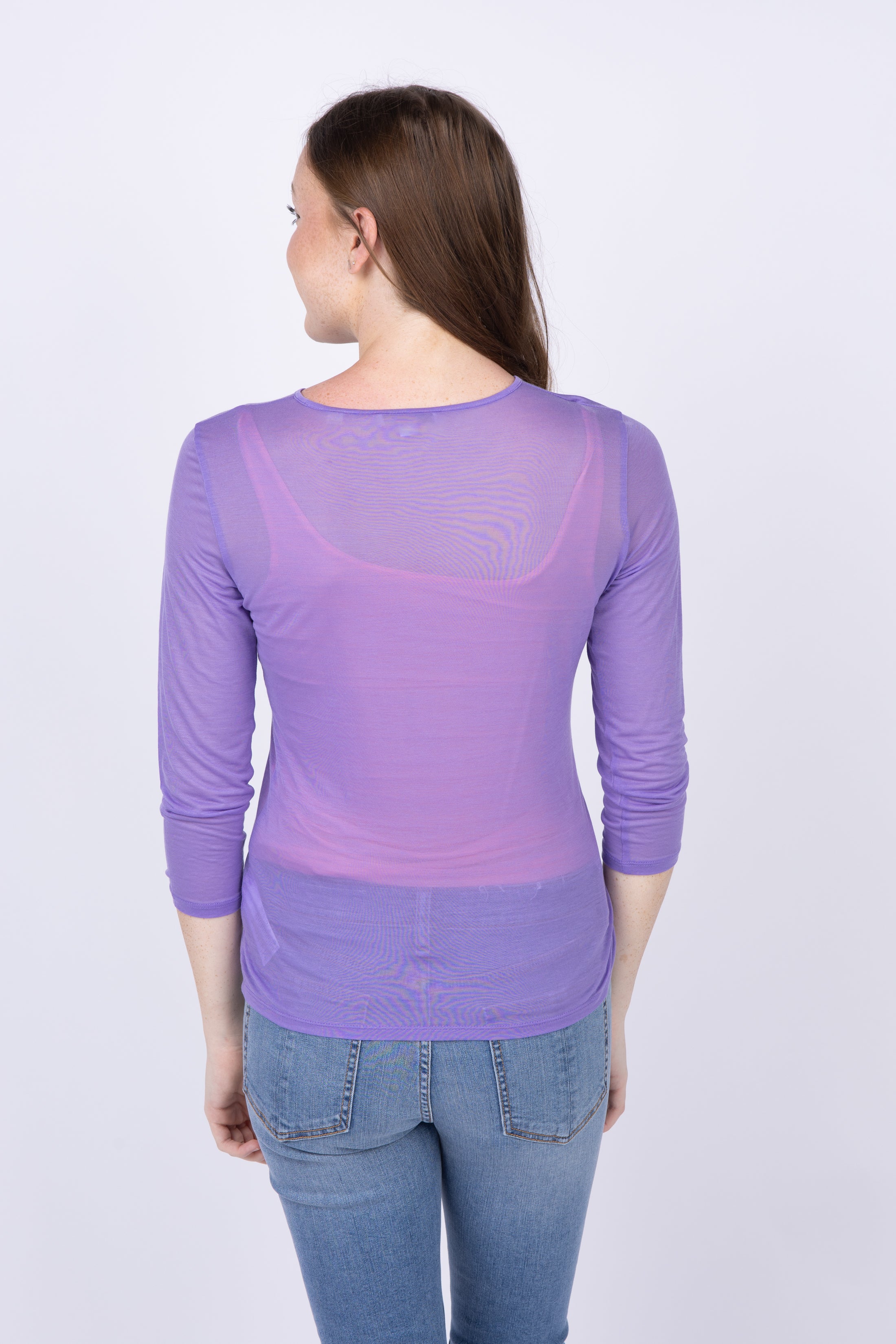 Look effortlessly polished in this Vince Sheer 3/4 Sleeve Crew in Sugar Plum Combo. Crafted from sheer jersey, this top is layered over an opaque camisole complete with adjustable straps and a crew neckline. Enchant your look with this indispensable, chic and versatile top!
