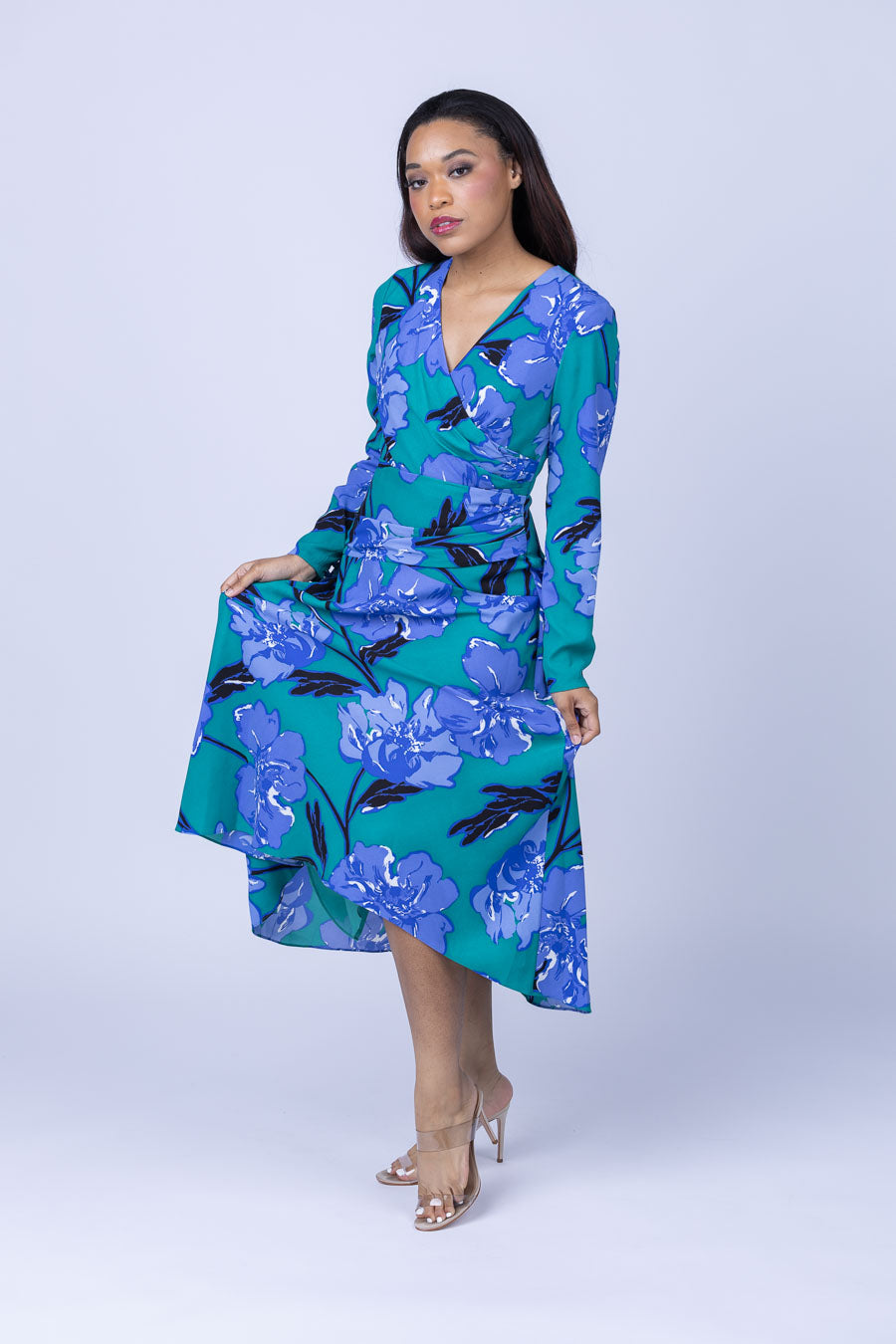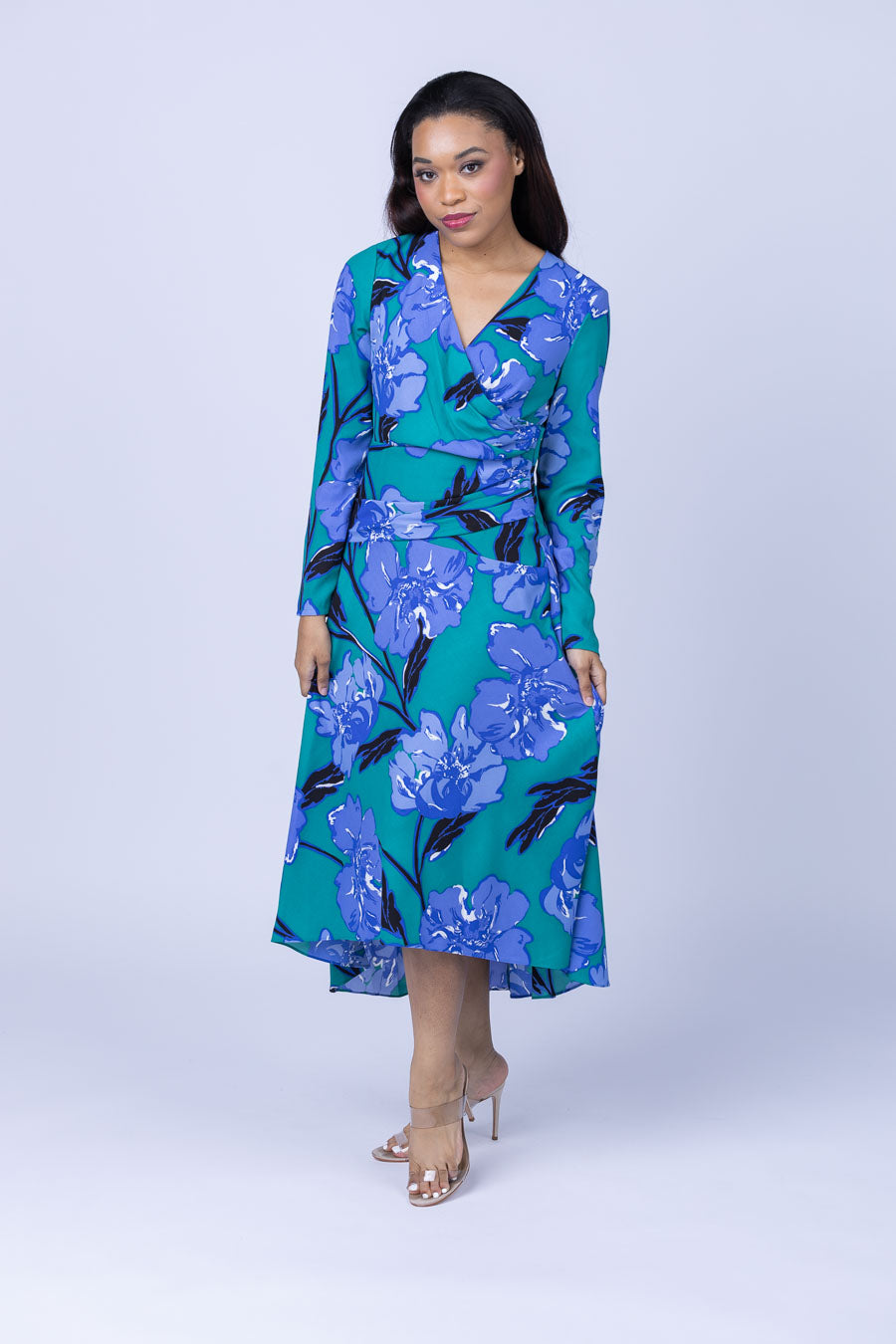 Feel the beauty of nature in the DVF Feronia Dress - a stunning statement piece in a vibrant Outline Floral pattern. With figure-flattering silhouettes and playful Blue Florals over a Green Crêpe backdrop, this dress will bring a hint of joy to your wardrobe. Ready to turn heads?
