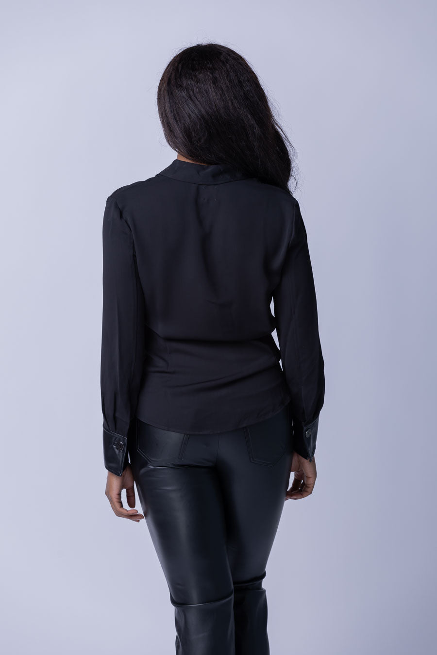Everyone needs at least one black top, but not all are created equal. Subtle detailing sets this top apart from the rest of your closet. The vegan leather cuffs, hidden placket, button details, and contrast trim add some subtle chicness and a touch of character while remaining true to the legendary style. Designed for a regular fit, but with pleat details on the back that give it some feminine shape. With a little extra length that takes the hem below the hip.