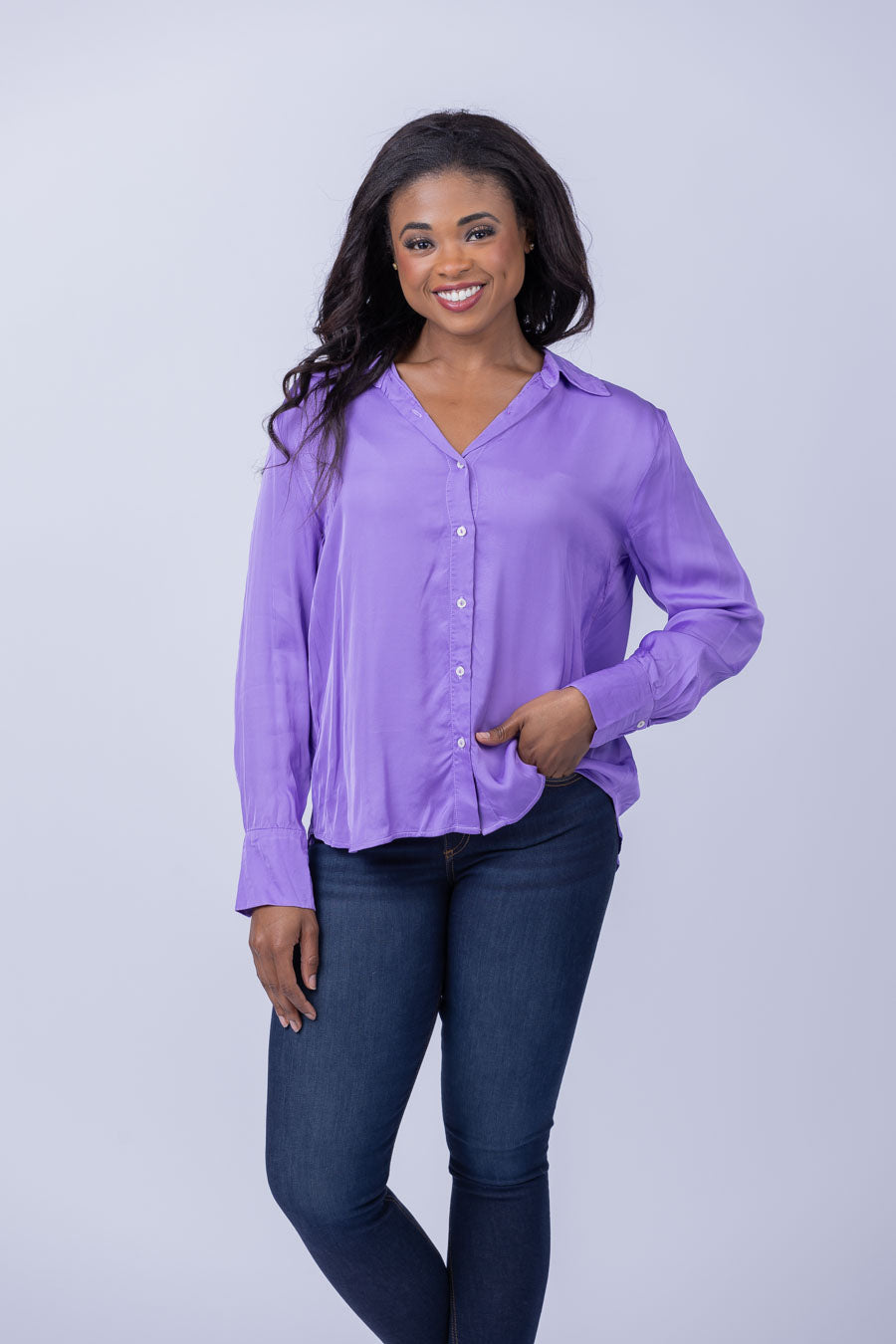 Our Velvet Bree Top in Mystic adds a beautiful pop of color to any work ensemble. Crafted from fresh and luxurious Satin Viscose, this chic top pairs perfectly with slacks or jeans and is easy to style for any look. A versatile piece for the office or a night out.