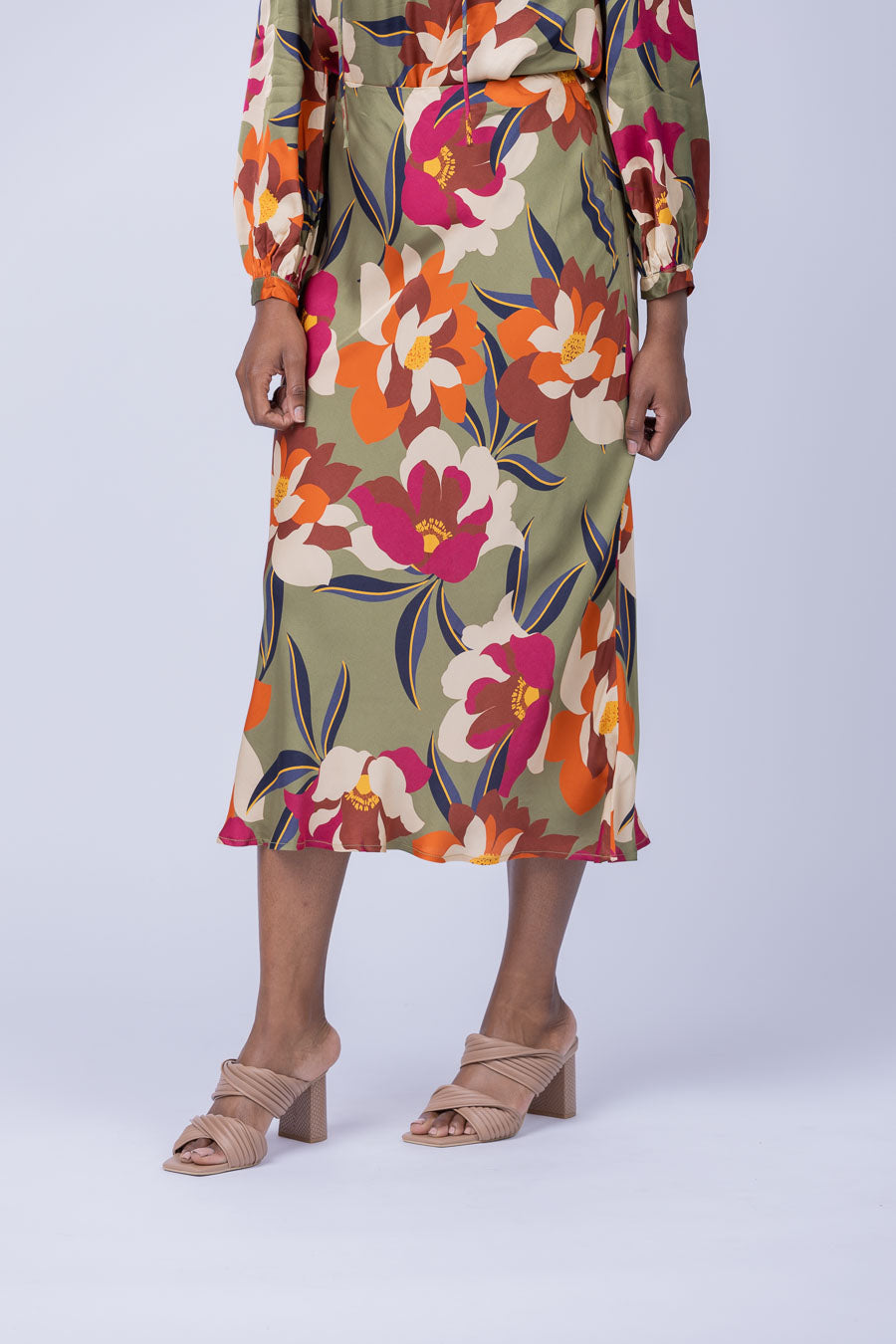 Revel in luxury with the Velvet Kaiya Skirt in Hydrangea. The soft and irresistibly rich satin fabric is adorned with a fun print, perfect for a party or special event. Wear it as a matching set or mix it up with a solid tank and a sweater. Elevate your wardrobe with this elegant, must-have piece!