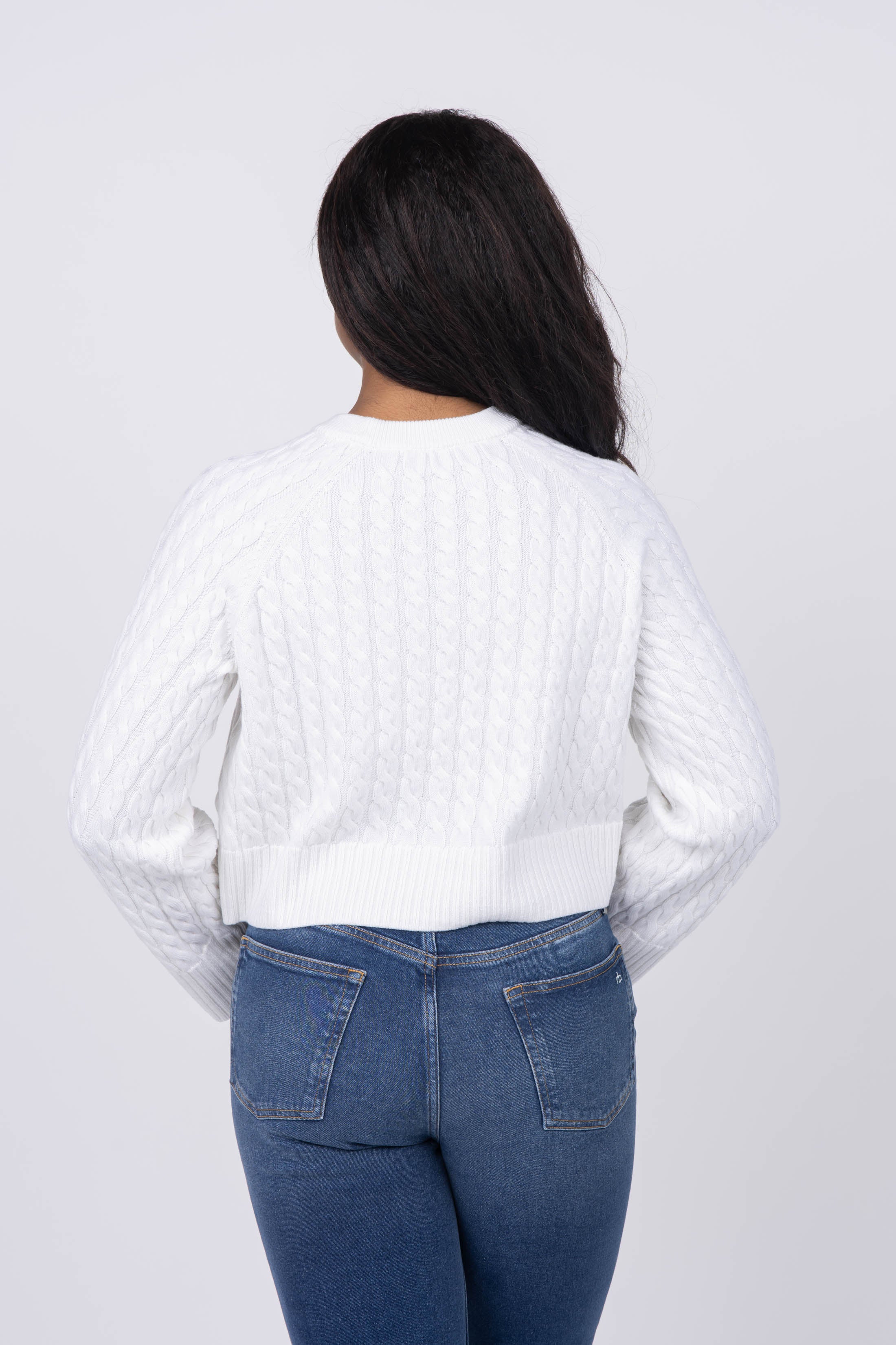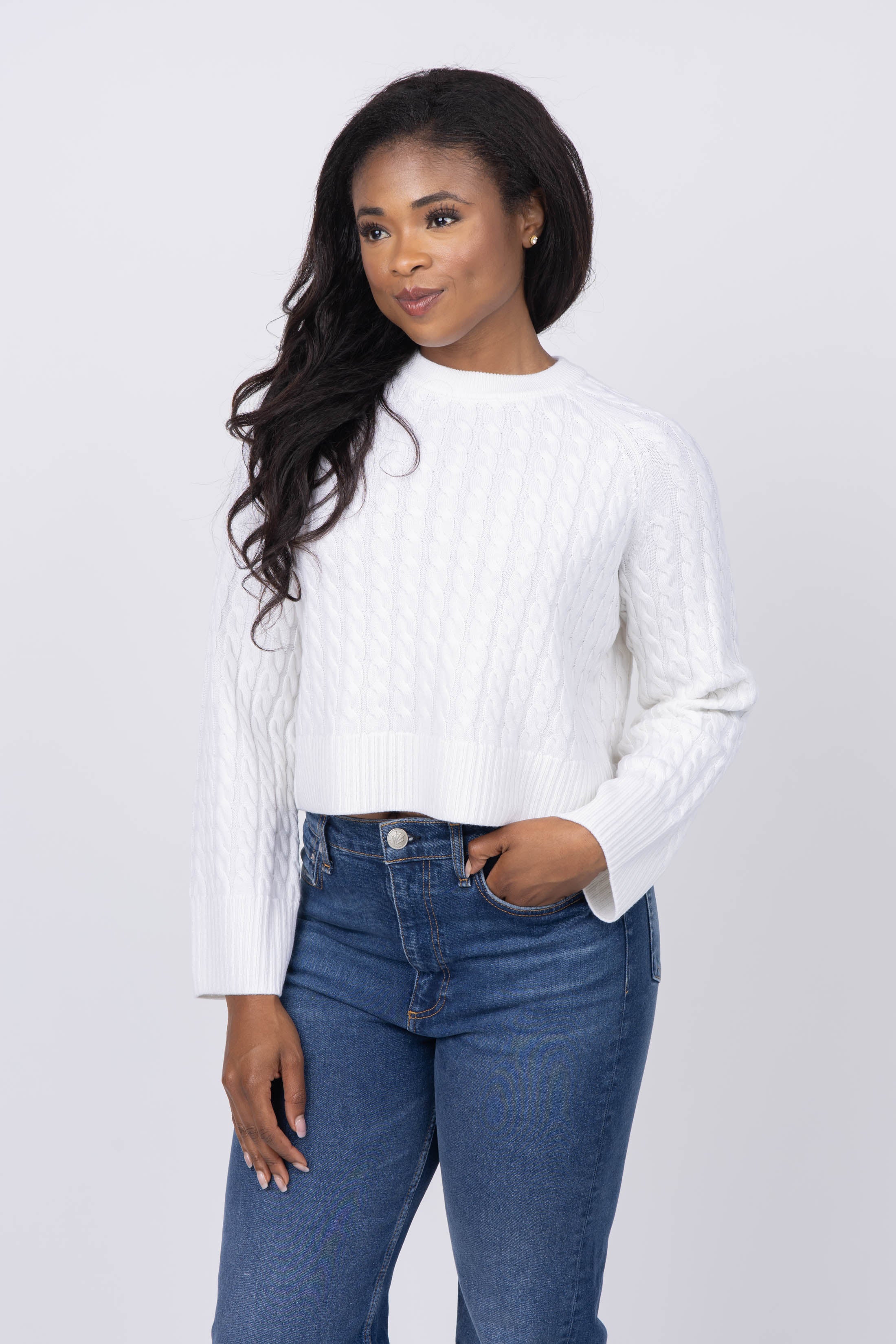 Alice + Olivia Cimaron Cable Knit Sweater in PLV/Ecru