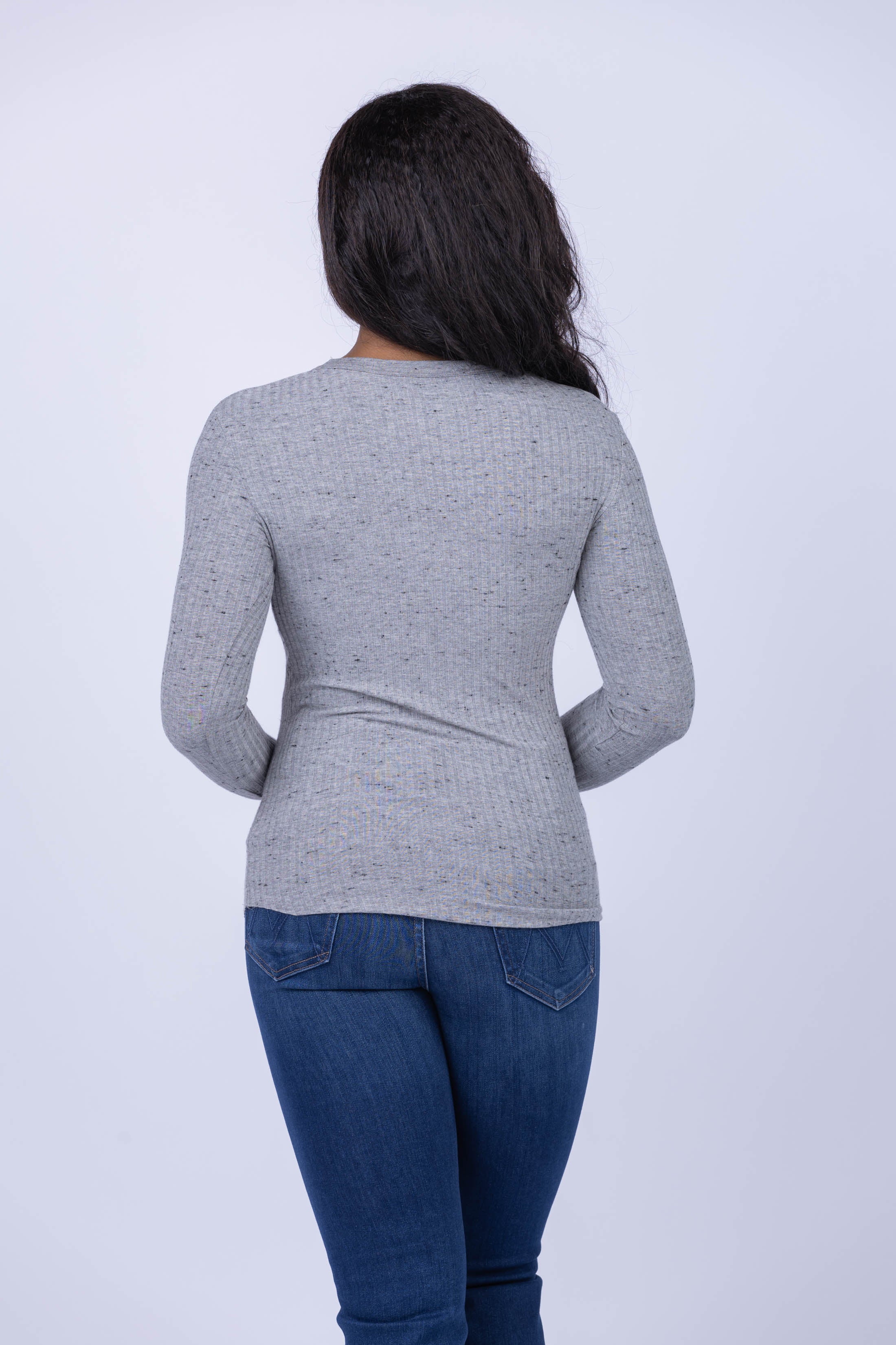 Enza Costa Long Sleeve Baseball Crew in Grey