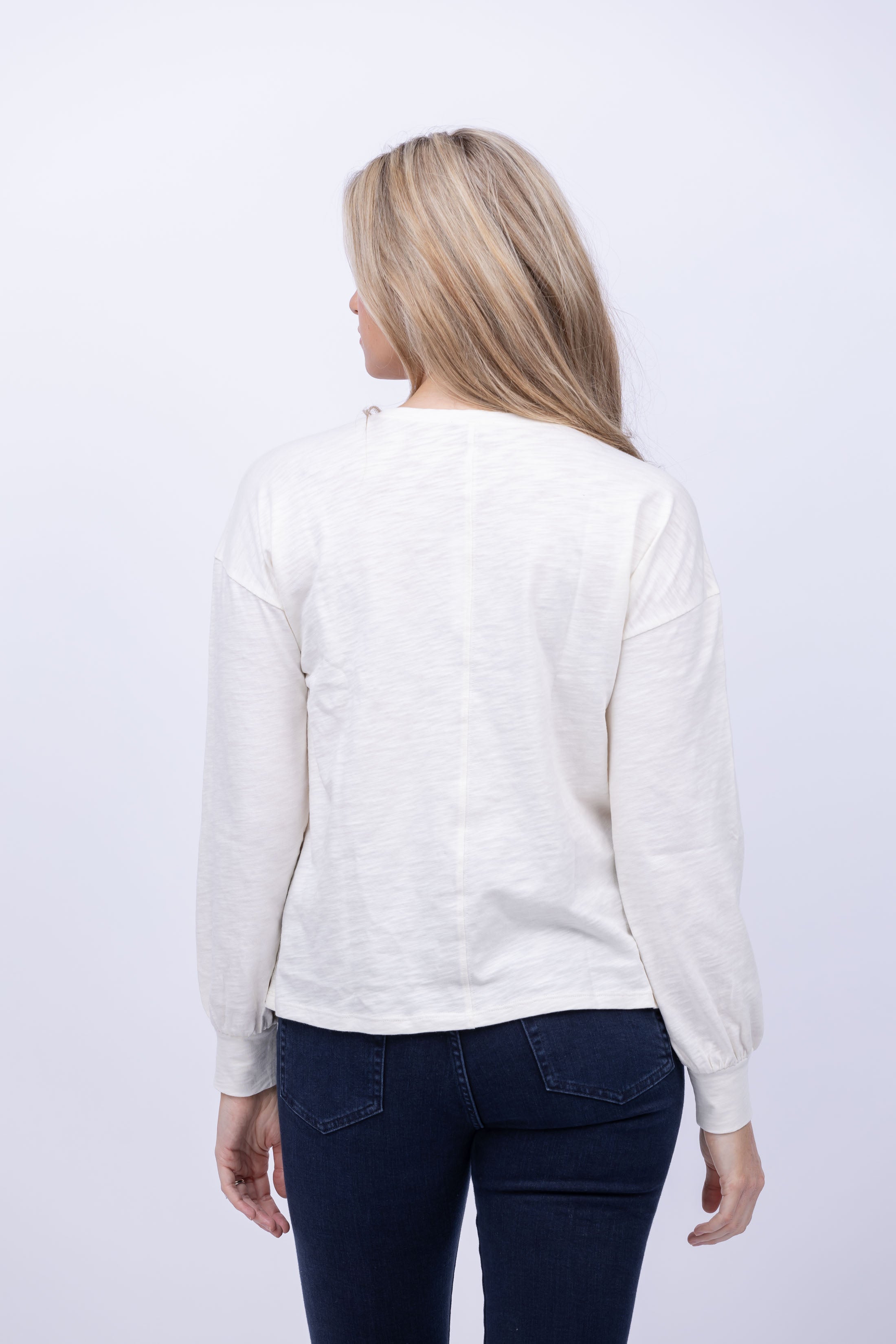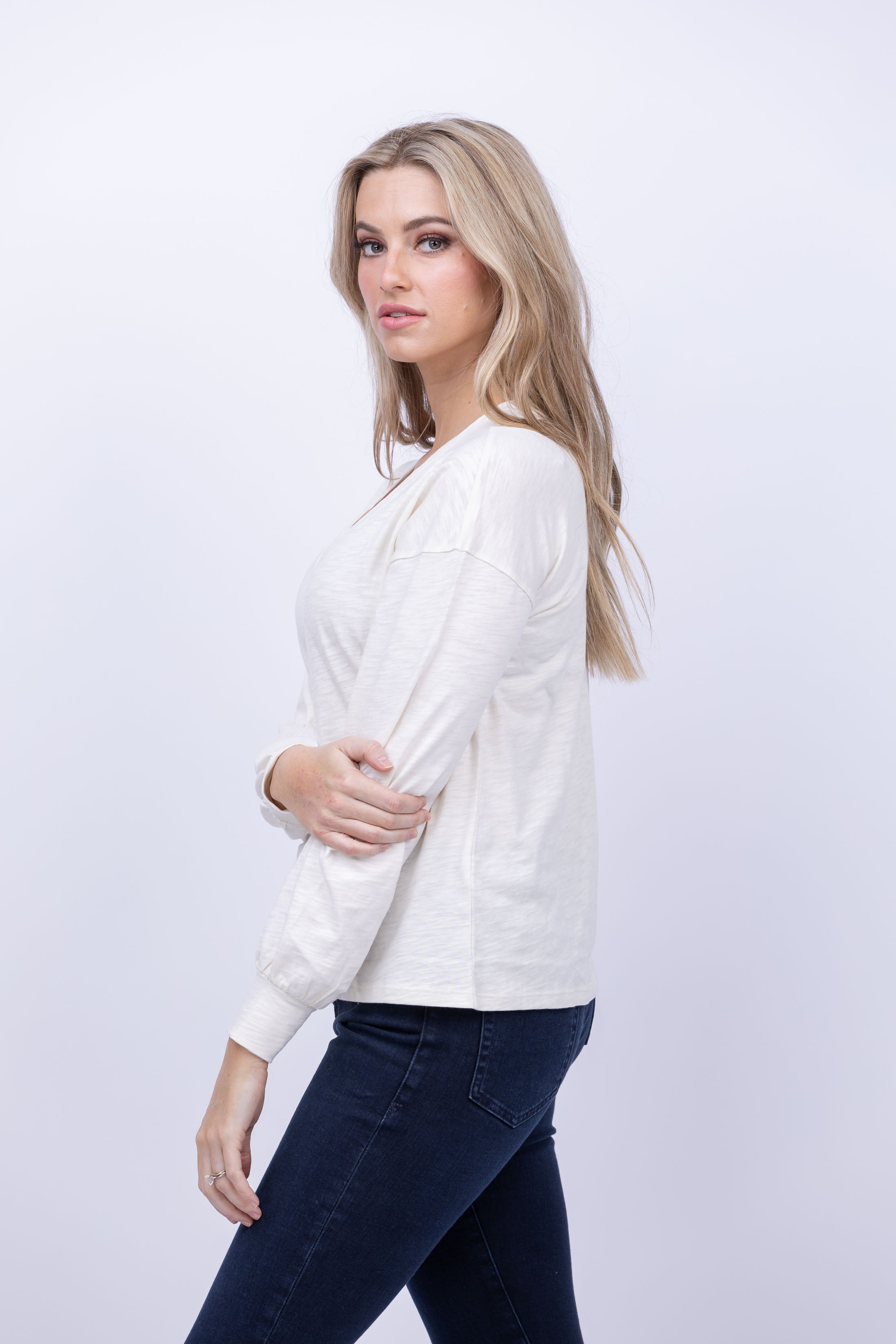 Lilla P Drop Shoulder V-Neck Tee in Ecru