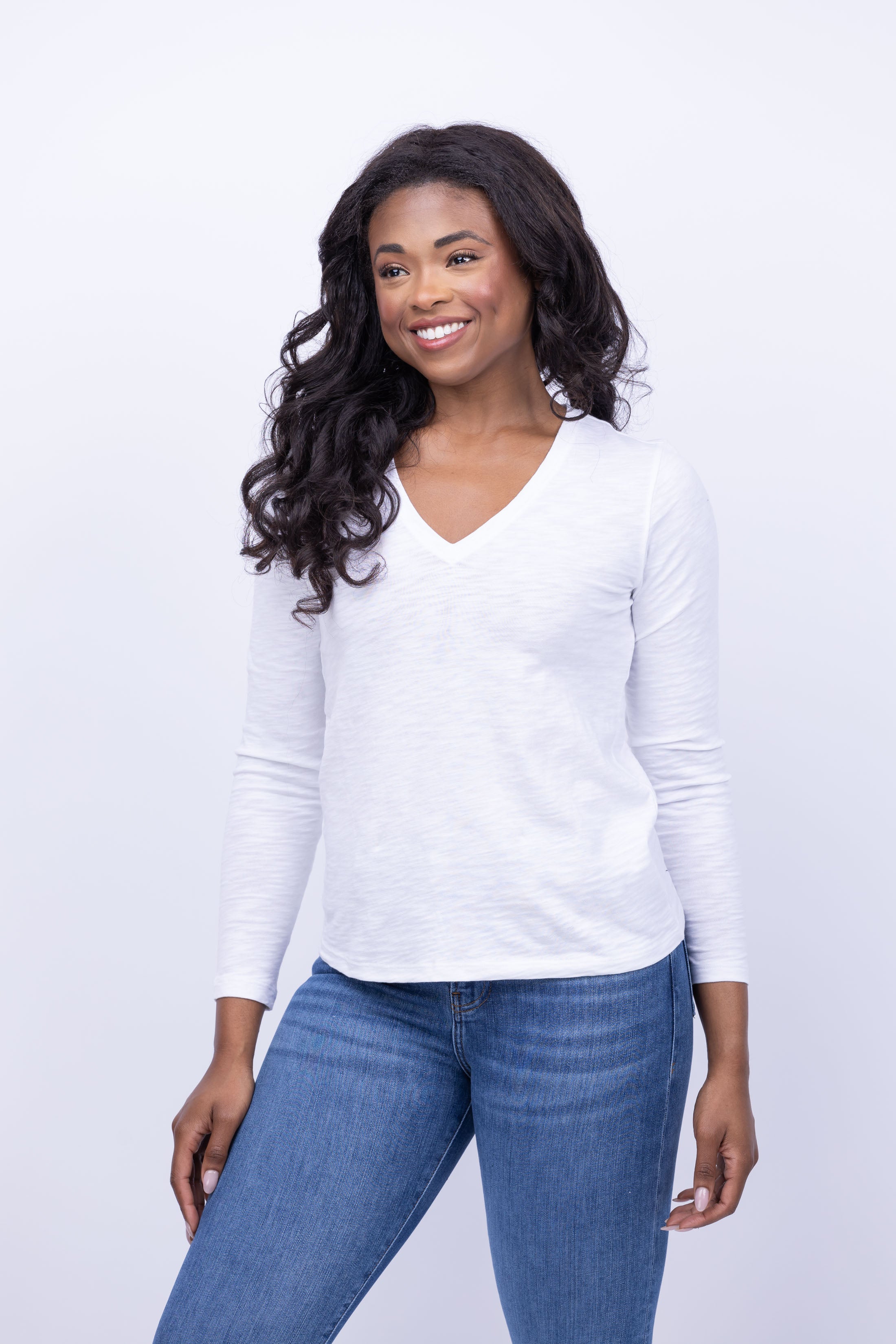 - The same Back Seam Long Sleeve V-Neck you love, now with a new style number!