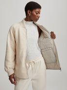Stay warm and stylish with the Varley Reno Reversible Jacket. This cozy jacket features a reversible design, made with soft knit fleece and quilted nylon for superior comfort. The ergonomic bomber-style silhouette and curved hem provide a sleek look, while the chunky rib trims add a touch of texture. Enjoy unique and effortless winter layering with the Reno Reversible Jacket.