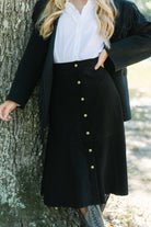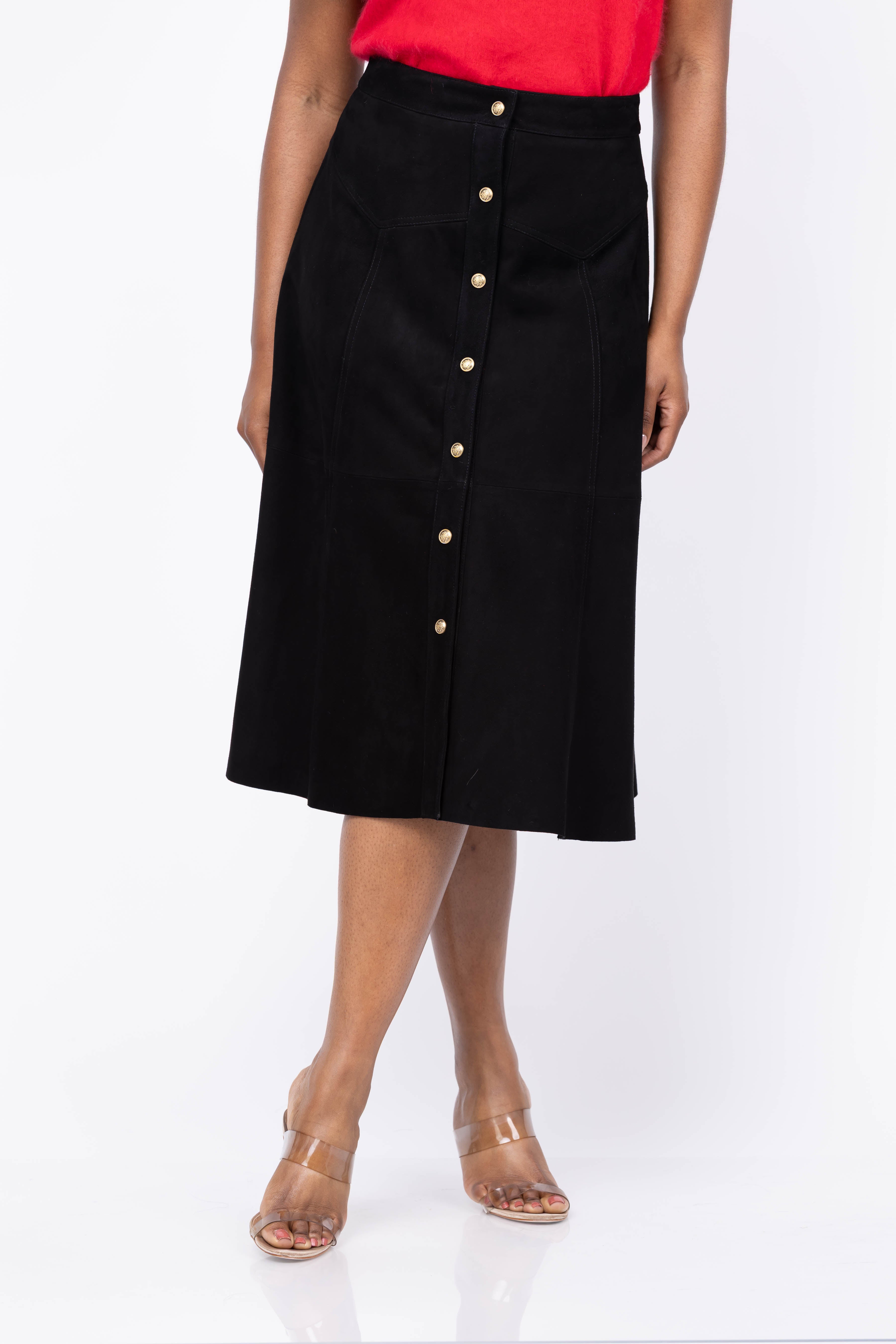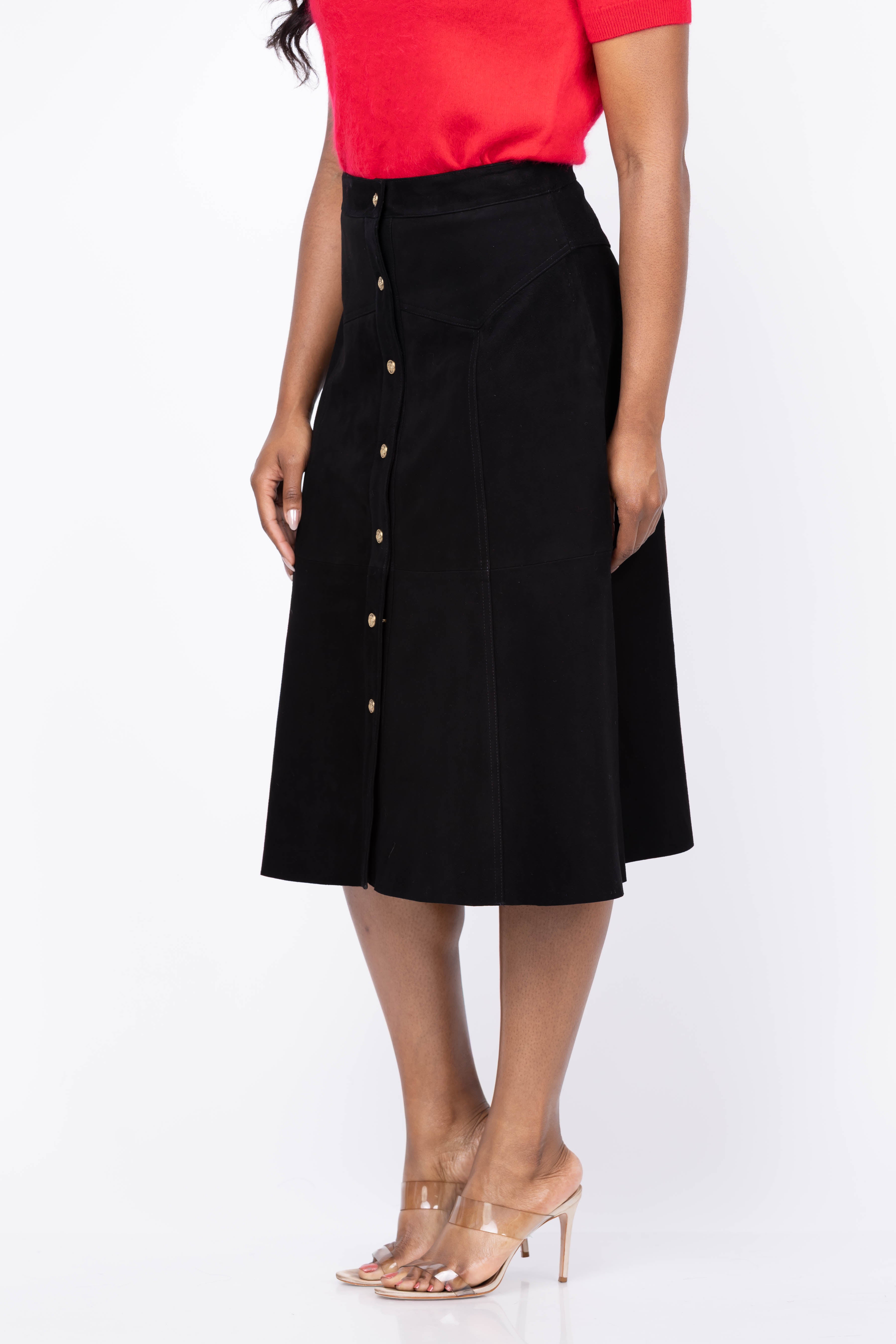 Alice + Olivia Calica Suede Snap Aline Midi Skirt in Black