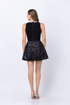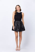 The Alice + Olivia Chara minidress combines sophisticated elegance with eye-catching glamour. This fit-and-flare style features a sleek, fitted sleeveless bodice that flatters your silhouette, paired with a voluminous pleated jacquard skirt for dynamic movement. Sparkling rhinestone embellishments frame the crewneck, adding a touch of sparkle perfect for evening events or special occasions. The back zip closure ensures an easy, polished fit. Mixed-media construction delivers both structure and style—ideal for anyone seeking a statement piece that transitions seamlessly from cocktail hour to the dance floor.