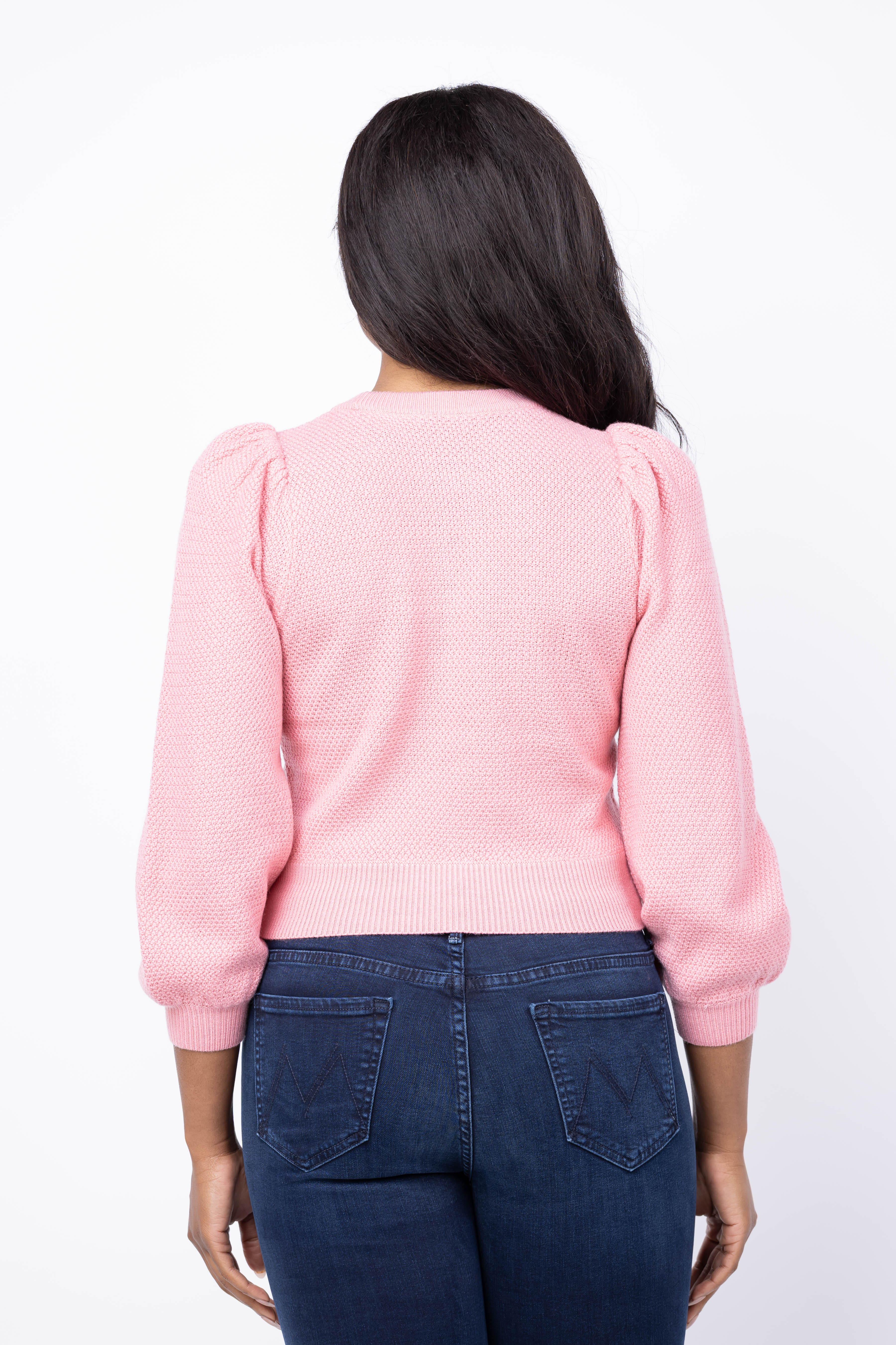 Alice + Olivia Doris Pointelle Pullover in Rose Tea