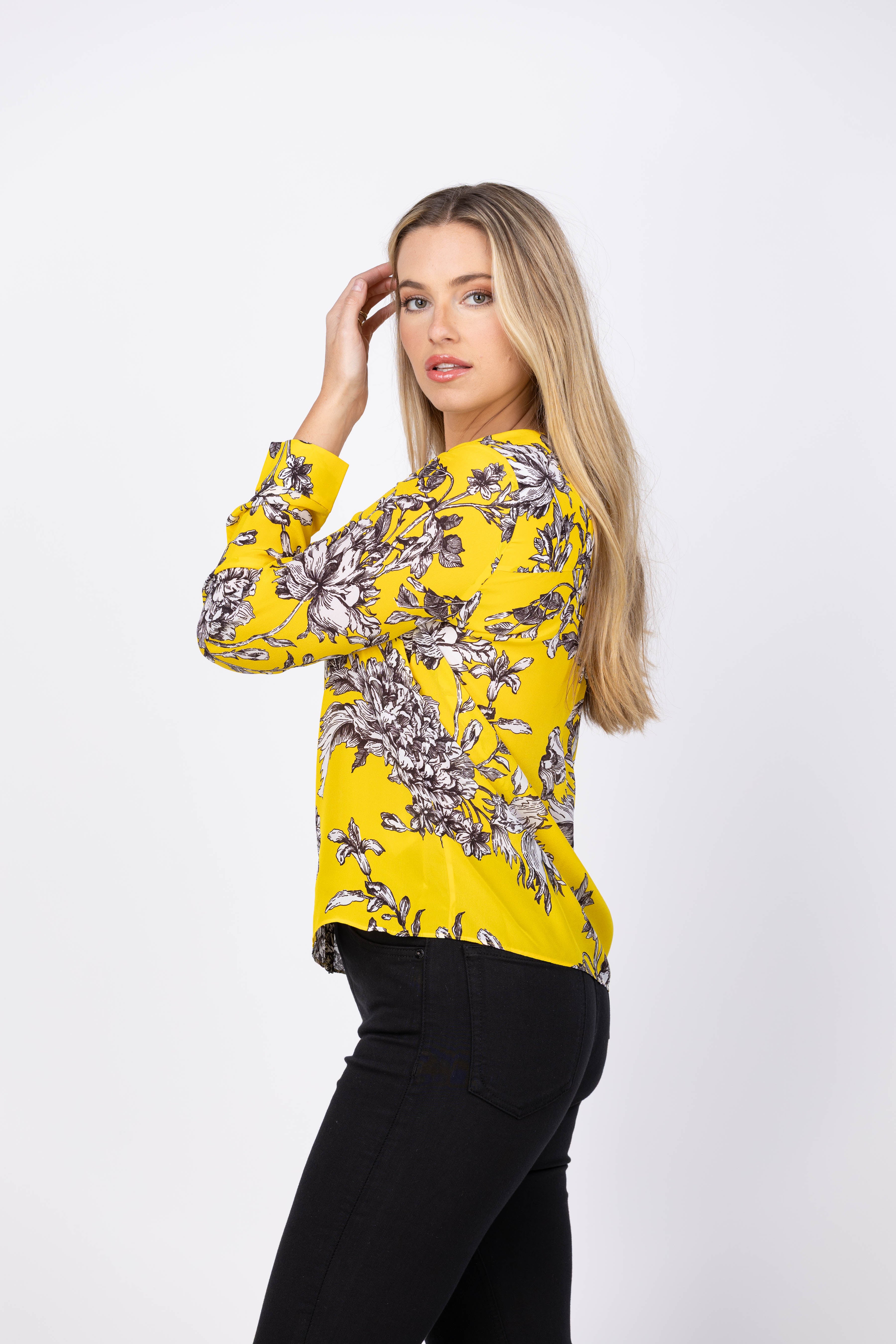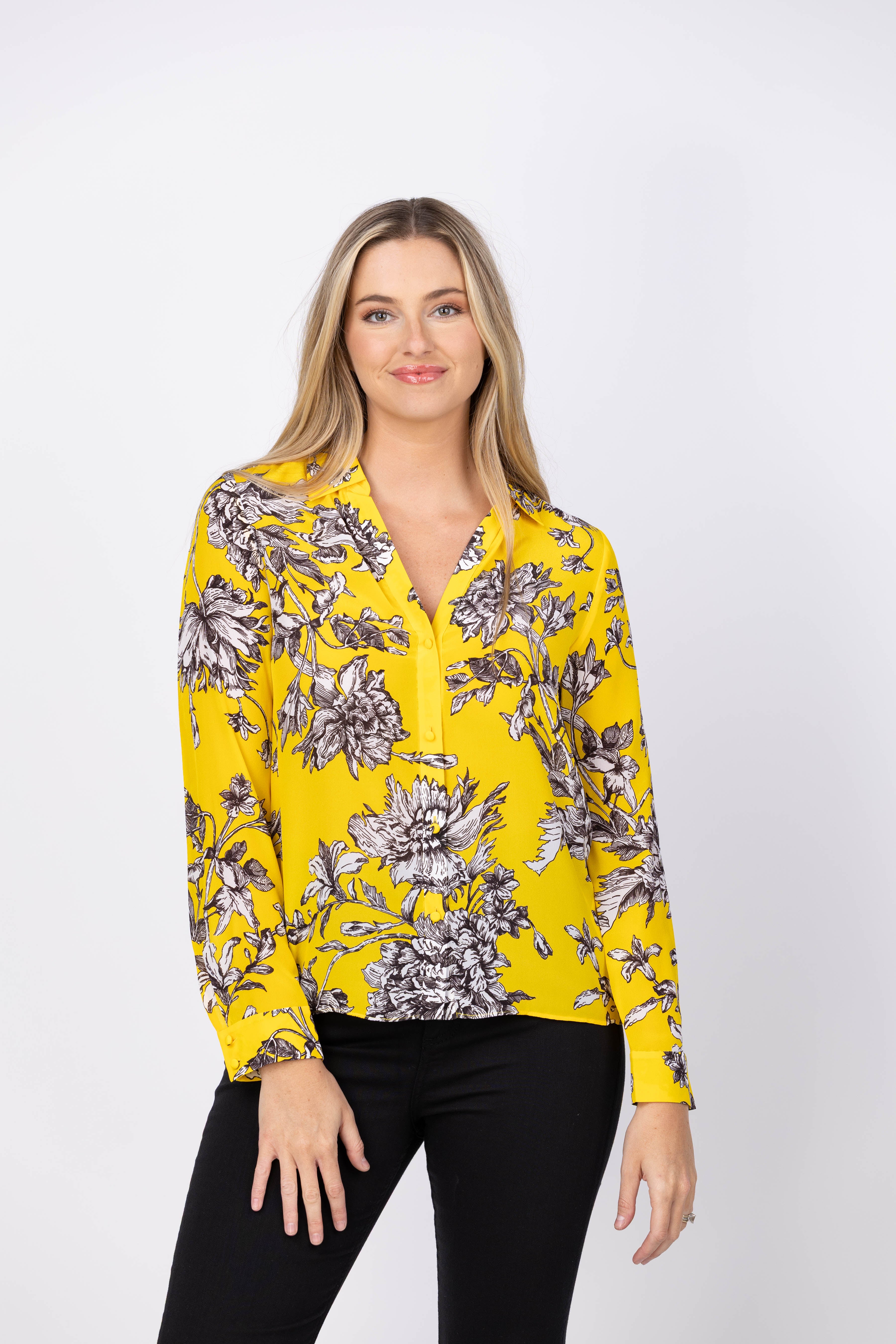 Alice + Olivia Eloise Button Dwn Blouse in Blooming Wild Golden Hour