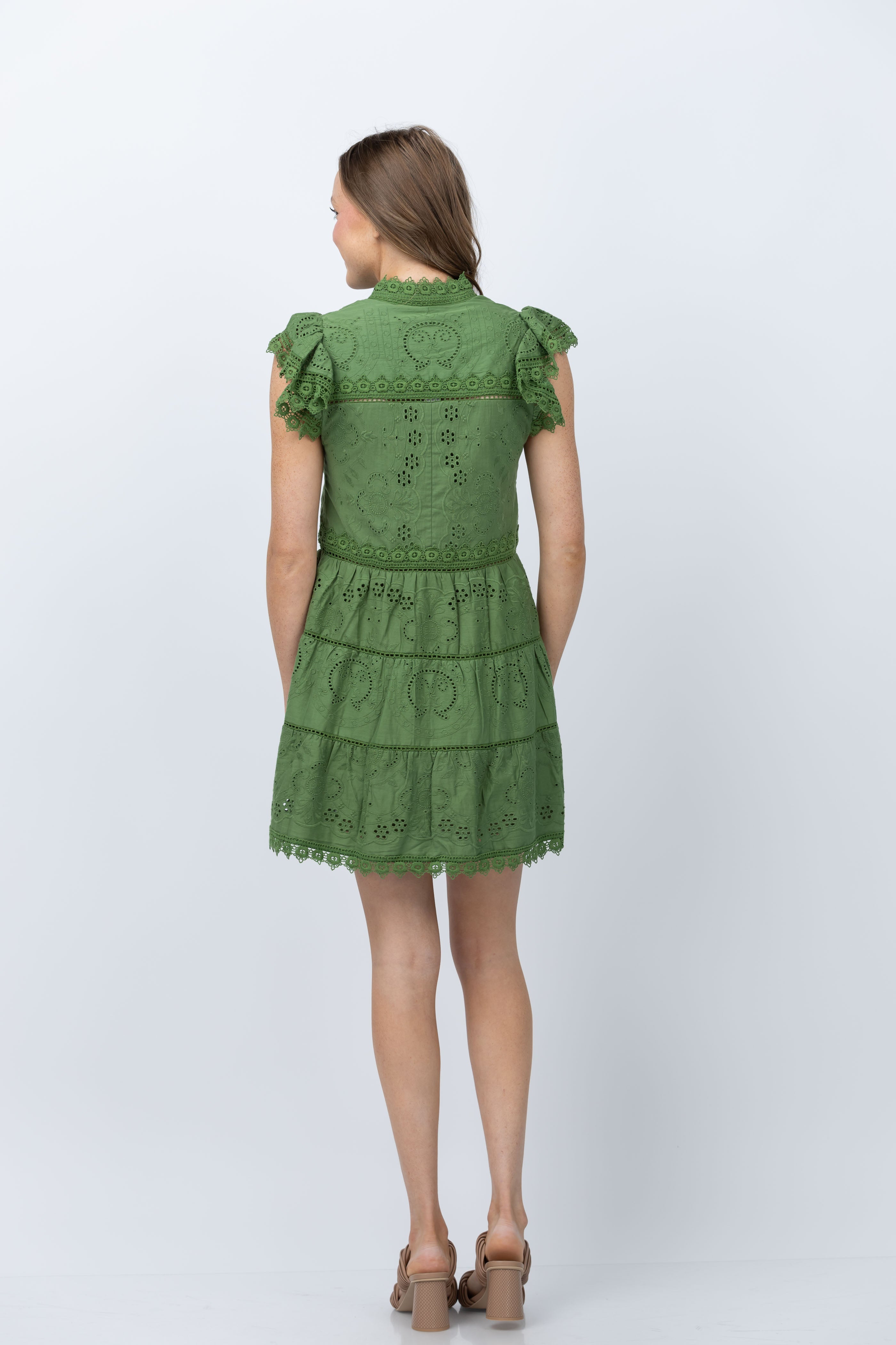 Alice + Olivia Marina Eyelet Dress in Avocado