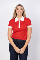 Alice + Olivia Martha Polo in Bright Ruby/Soft White