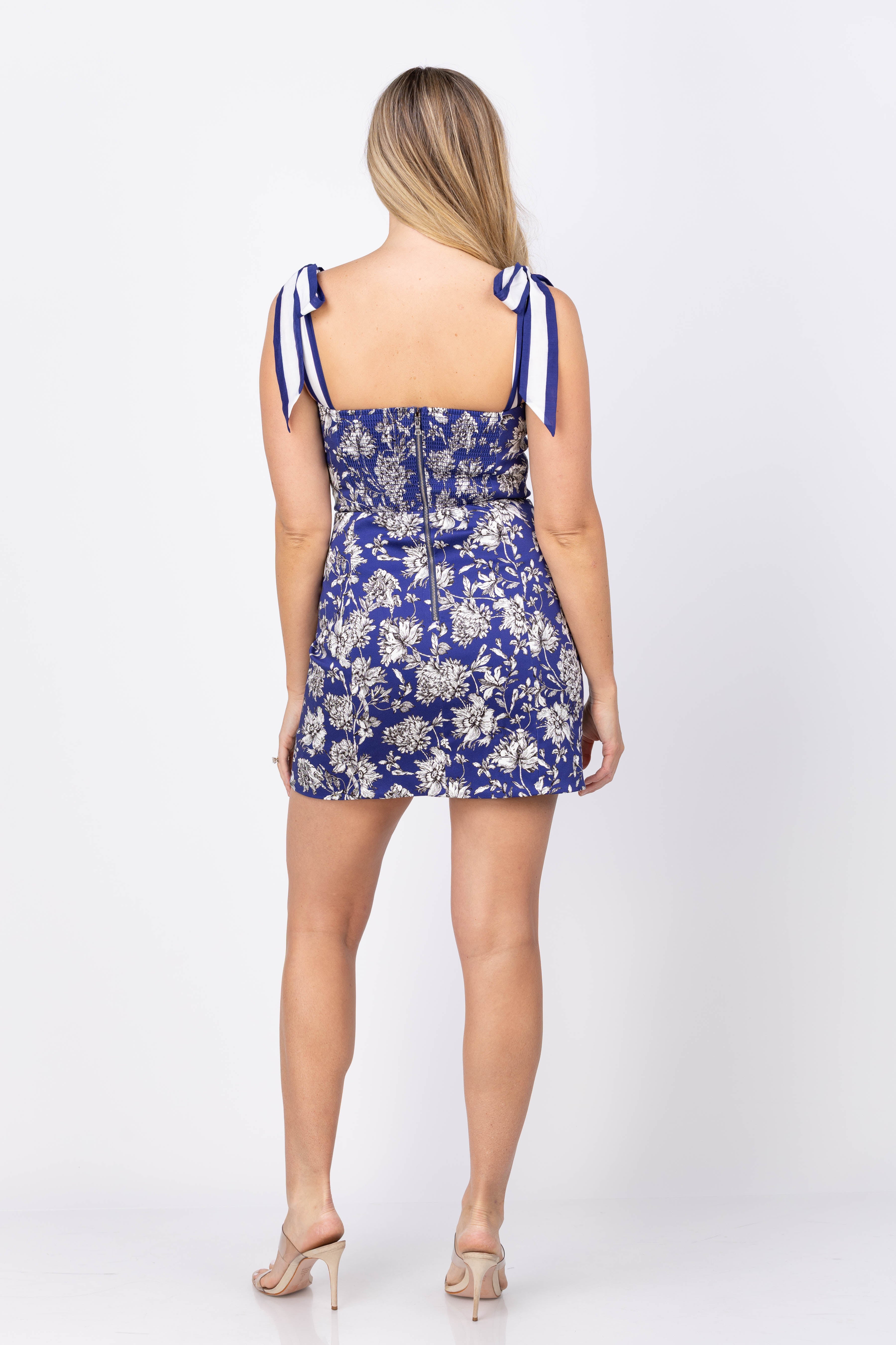 Alice + Olivia Maryann Tie Shoulder Dress in Blooming Wild Indigo