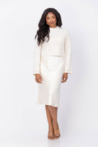 Elevate your style with the DH New York Roz Sweater/Dress Combo in Dove Marl. This elegant cream monochromatic ensemble pairs a cozy sweater top with a smooth silk slip, creating a versatile look that works perfectly as a dress. Combining comfort and sophistication, it effortlessly transitions from casual outings to chic evenings, making it an essential piece for your wardrobe.