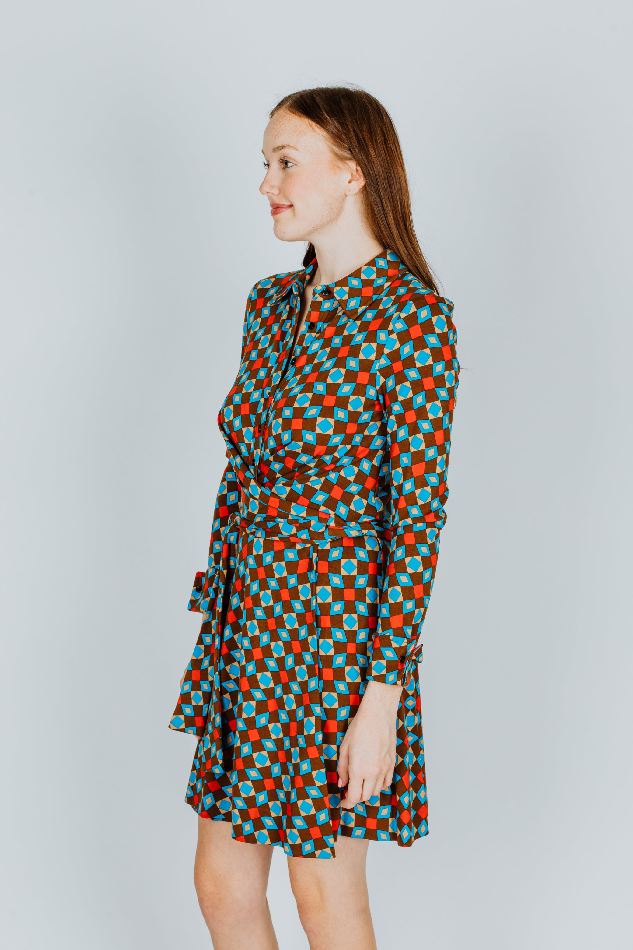 DVF Didi Mini Wrap Dress in Tile Geo Medium Chocolate
