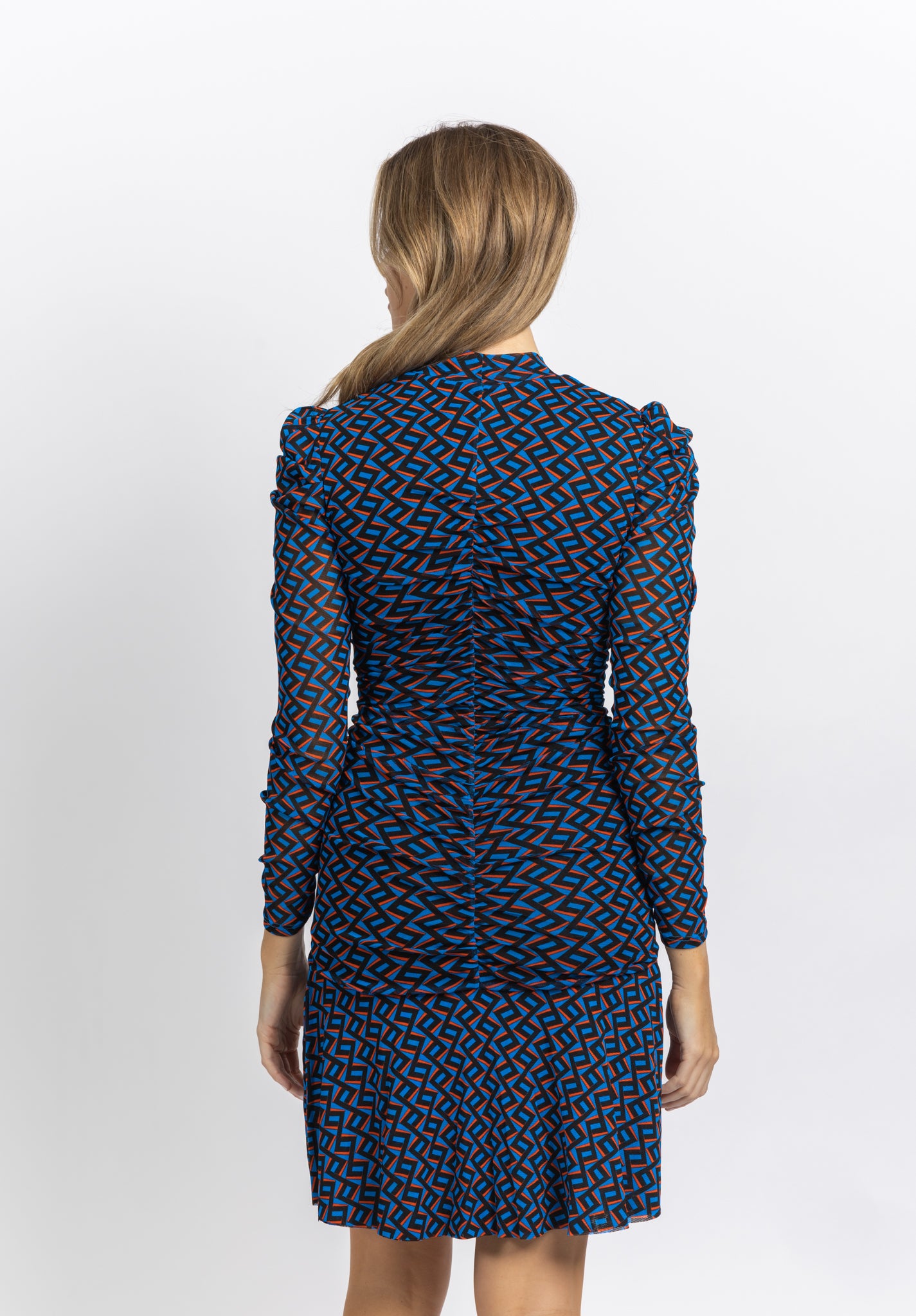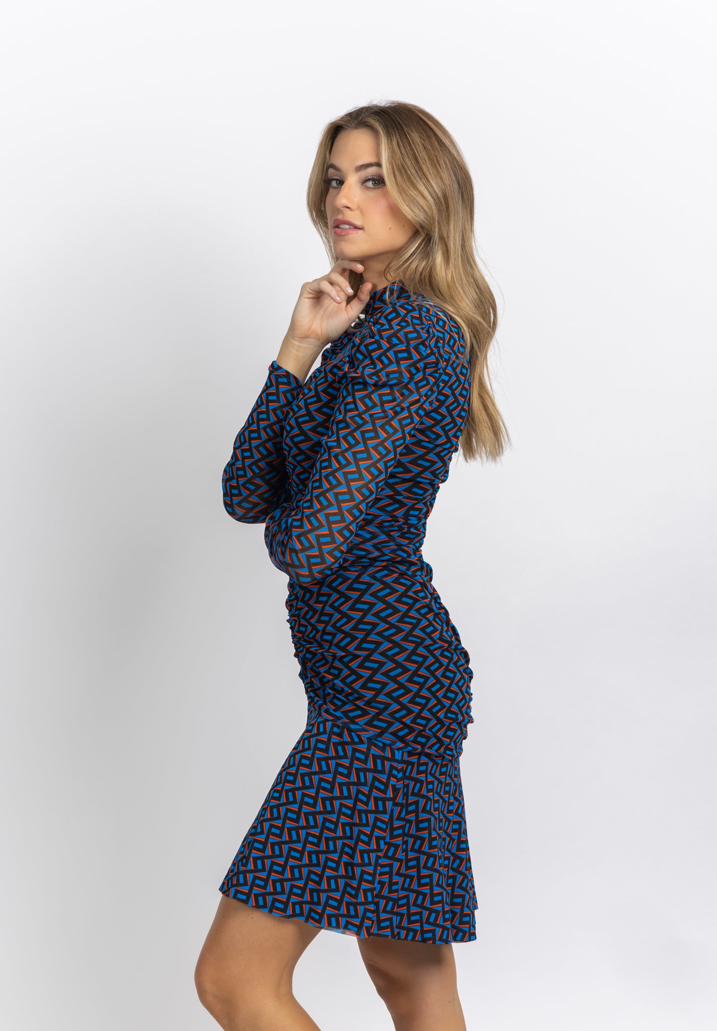 Designed with head-turning ruching along the center, the Karli dress is perfect for an occasion. This piece has long sleeves, slightly puffed shoulders, and lands at around mid-thigh. Cut from body-hugging mesh, it's flattering and made for dancing the night away.