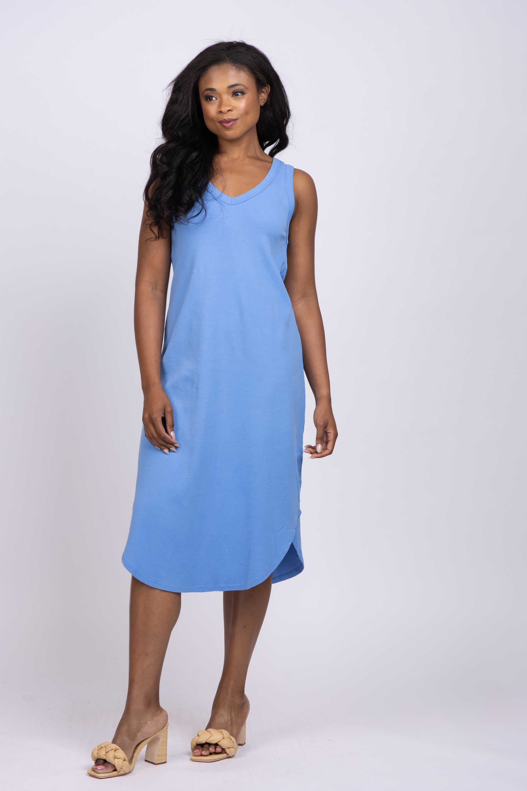 Let your inner bohemian shine through in the Dylan Deep V Dress in Capri! Featuring a timeless Deep V neckline, this casual dress is perfect for a beach day or lunch date. Style it with some flip flops and sunnies, and you'll be turning heads wherever you go!