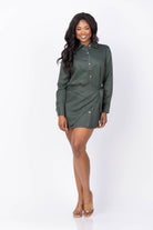 The Hevron Triva Dress in Deep Forest redefines tailored style with a relaxed twist. Made from soft Tencel twill, this clean shirt-dress silhouette features a faux wrap front for effortless wear. A collared neckline and button-front closure add polished detail, while the fluid fabric ensures graceful movement and comfort. Perfect for those seeking a stylish, fuss-free dress that transitions seamlessly from day to night.