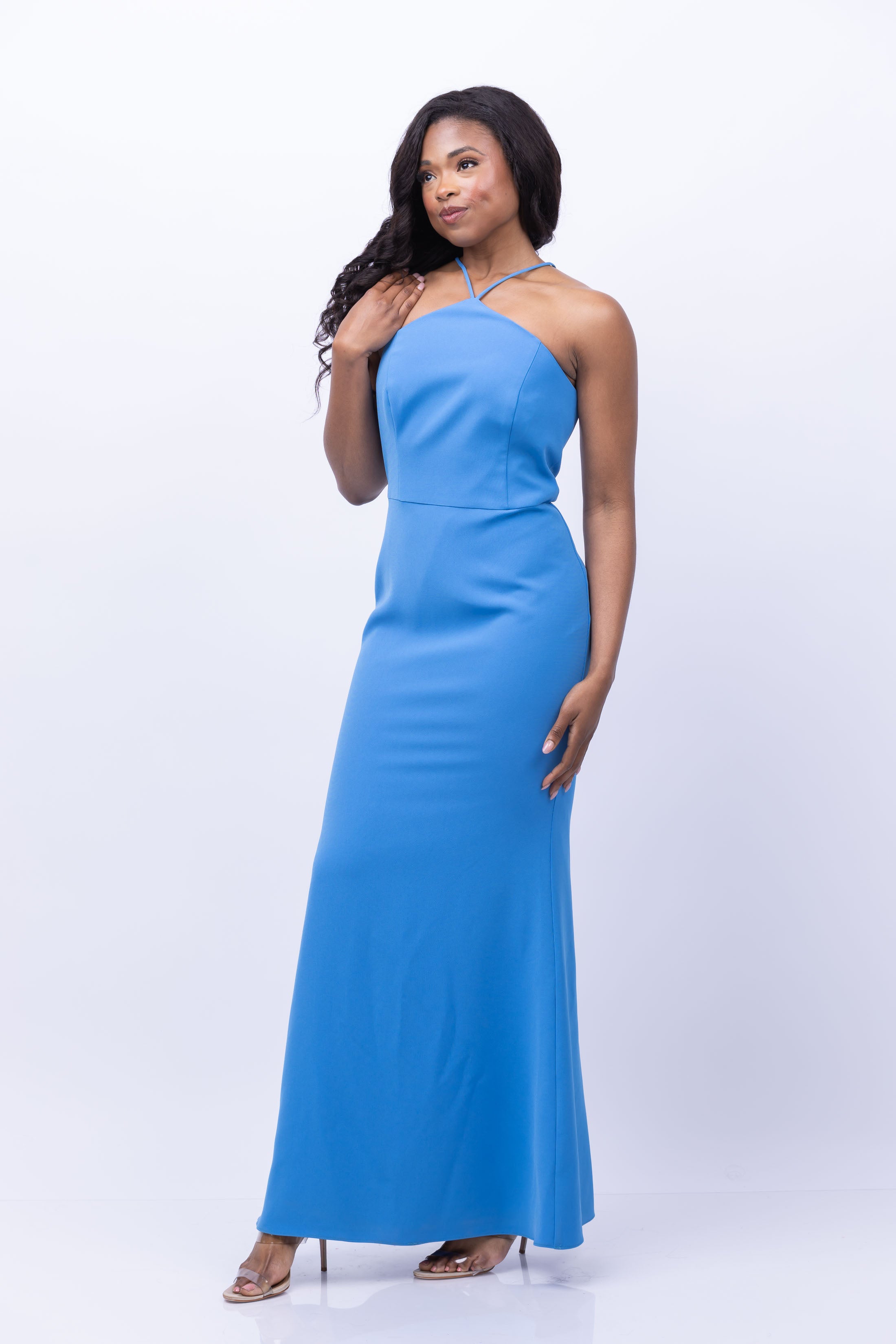 Elevate your style and radiate confidence in our Liv Foster Drs ML1E208128 IMP. Made from a soft, stretchy triacetate twill fabric, this striking gown features a skin-revealing halter neckline and a polished, floor-length mermaid skirt. Perfect for black-tie galas and weddings, its back zipper closure and stretch poly lining ensure a comfortable and glamorous fit. Embrace the good life in this showstopping style!