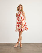 The Tanya Taylor Jessie Dress in Cream/Tomato combines playful femininity with effortless style. Its flattering trapeze silhouette and flounce tiered skirt create a lively, polished look, while on-seam pockets add practical charm. The classic crew neck and fresh Americana-inspired print make it perfect for day-to-night wear. Pair with flats for casual summer outings or dress it up with heels for evening elegance. This mini dress is your new go-to for versatile, chic sophistication.