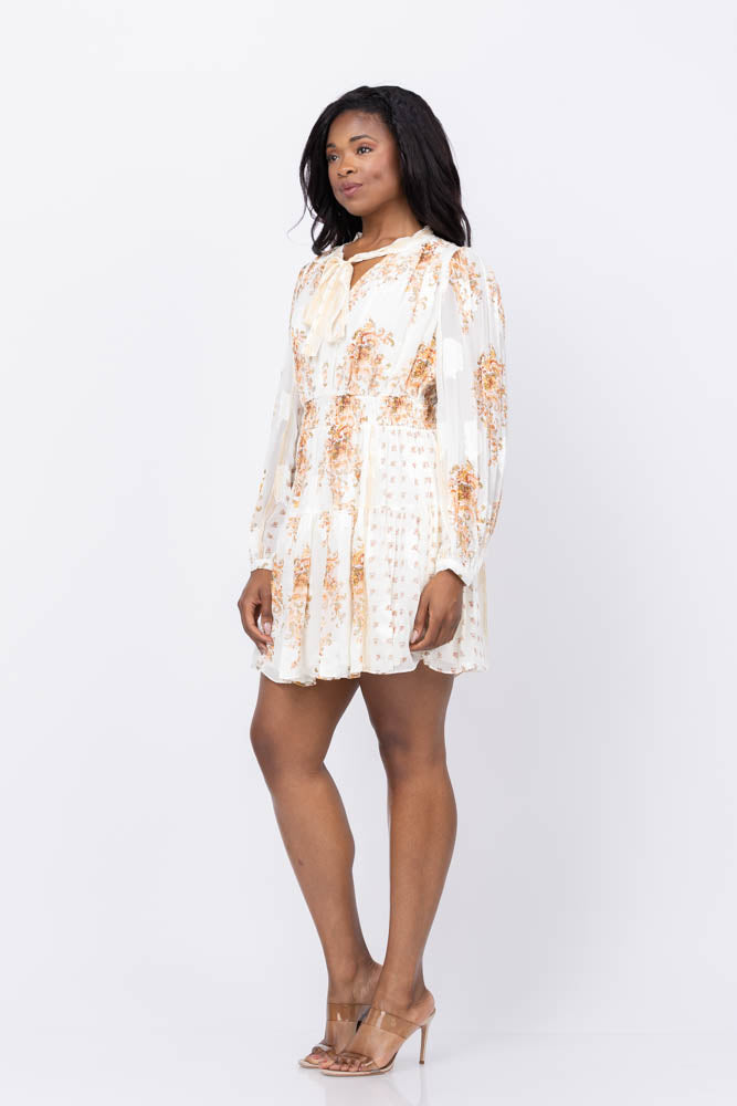 Ulla Johnson Maris Necktie Long Sleeve Mini Dress in Alabaster