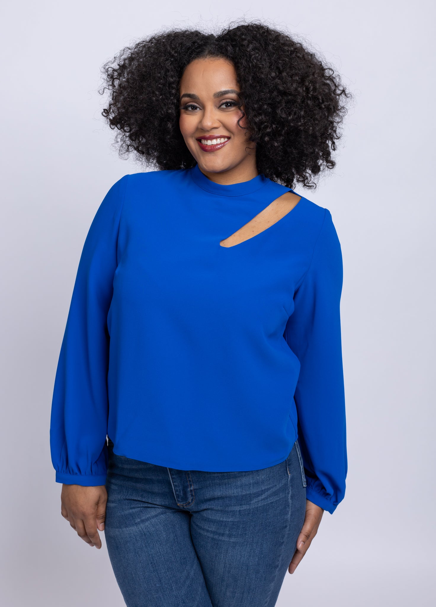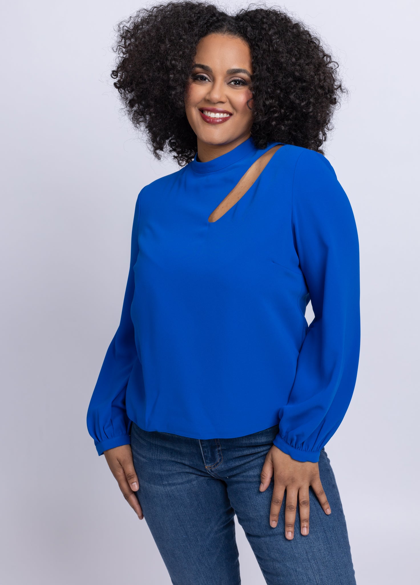 This beautiful long sleeve high neck top features a small slit to add a little special something to a top that is perfect for any occasion.