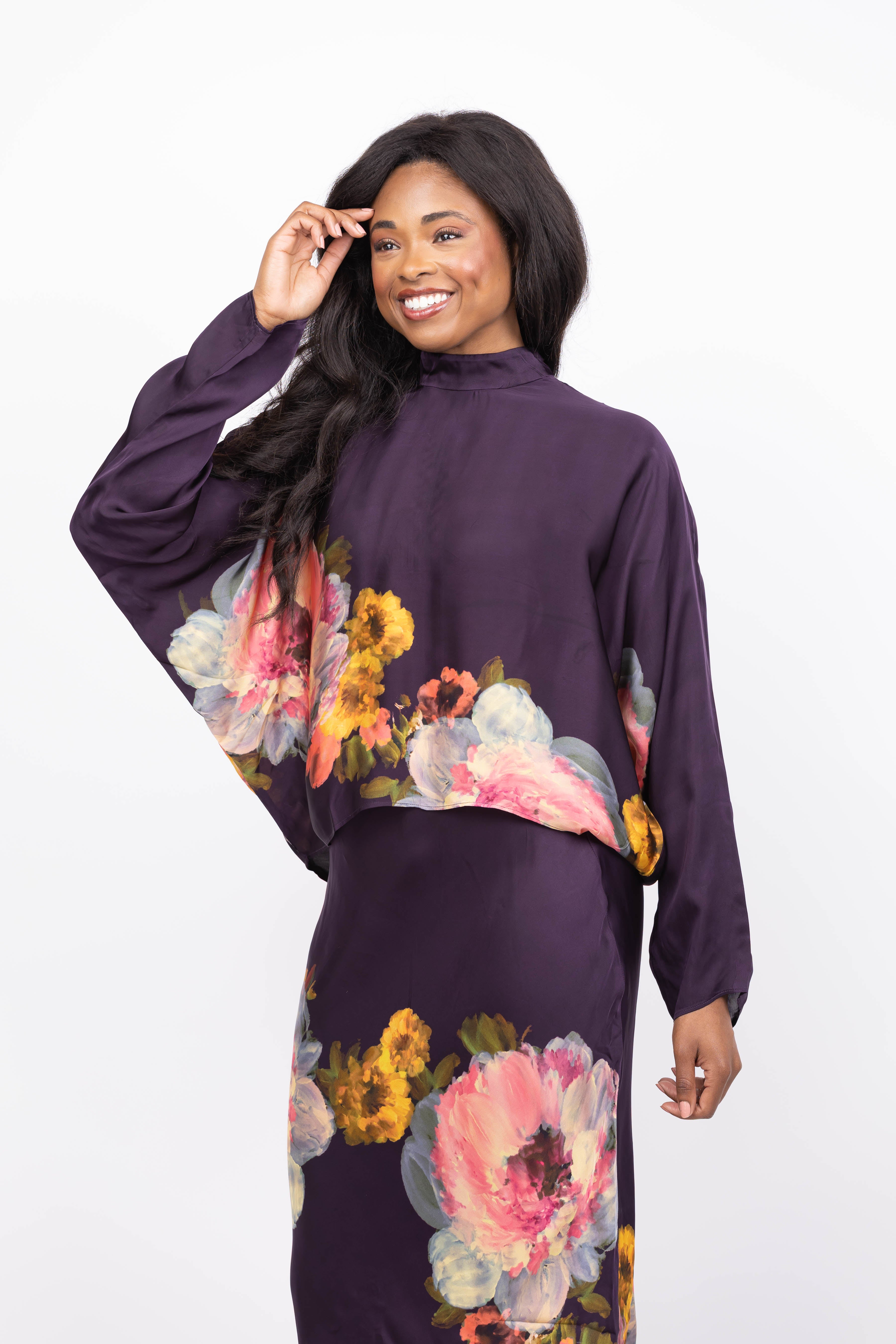 Step out with cool confidence in the Amanda Uprichard Covey Top in Seona Print. Featuring a mock neck, long sleeves, and a relaxed fit, this floral top effortlessly completes your look. Pair it with the Elroy Skirt for a coordinated, easygoing outfit that balances casual comfort with stylish charm.