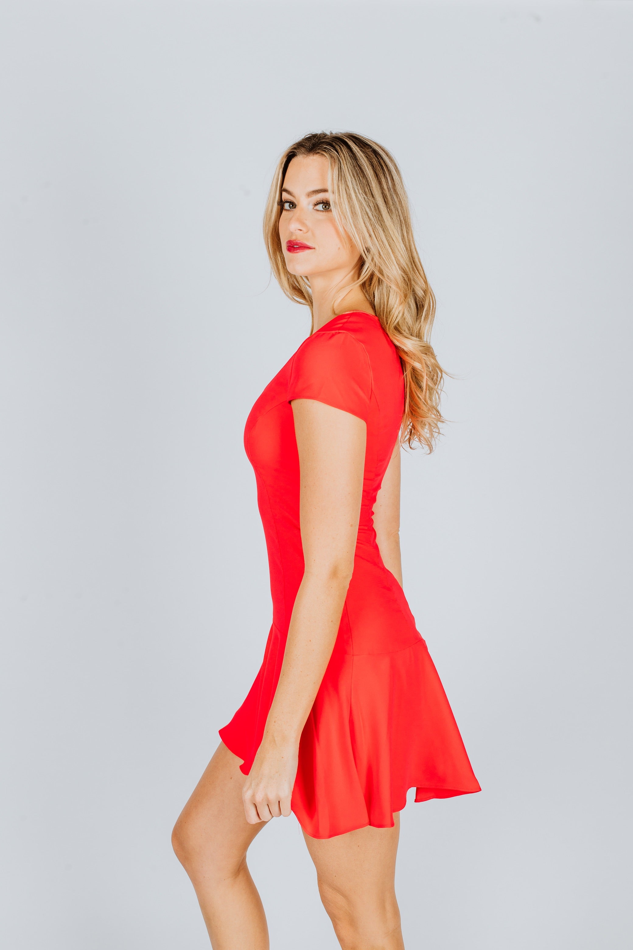 This short sleeve dress features a round neck with a single-tier flounce at the hem. Complete the look with strappy heels and gold hoops for a chic outfit to wear for parties, homecoming, or weddings.