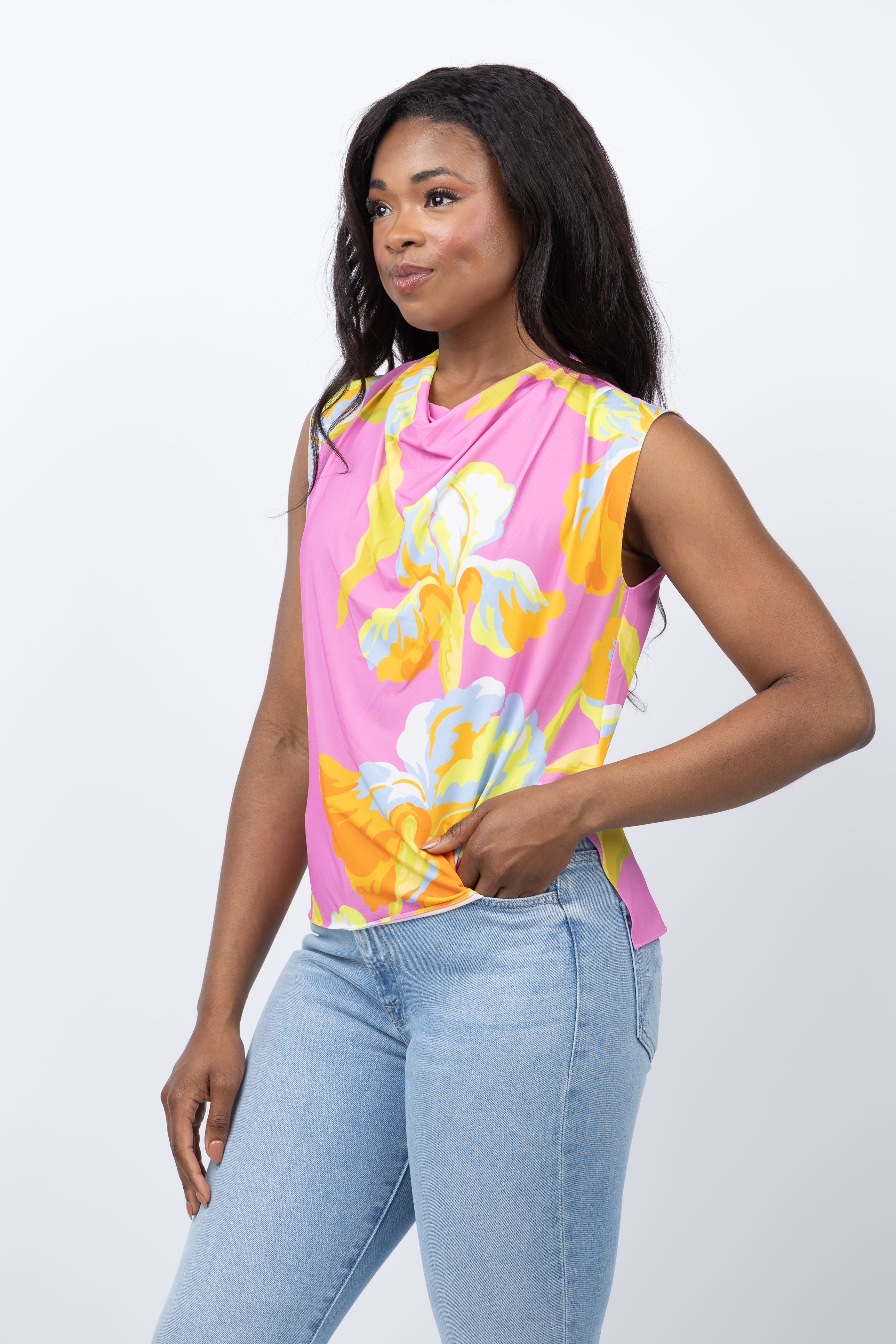 Elevate your summer style with the Amanda Uprichard Freya Top! The cowl neck adds a touch of sophistication, while the fun bright print brings a playful vibe. Pair it with white shorts and sandals for a chic and effortless look.