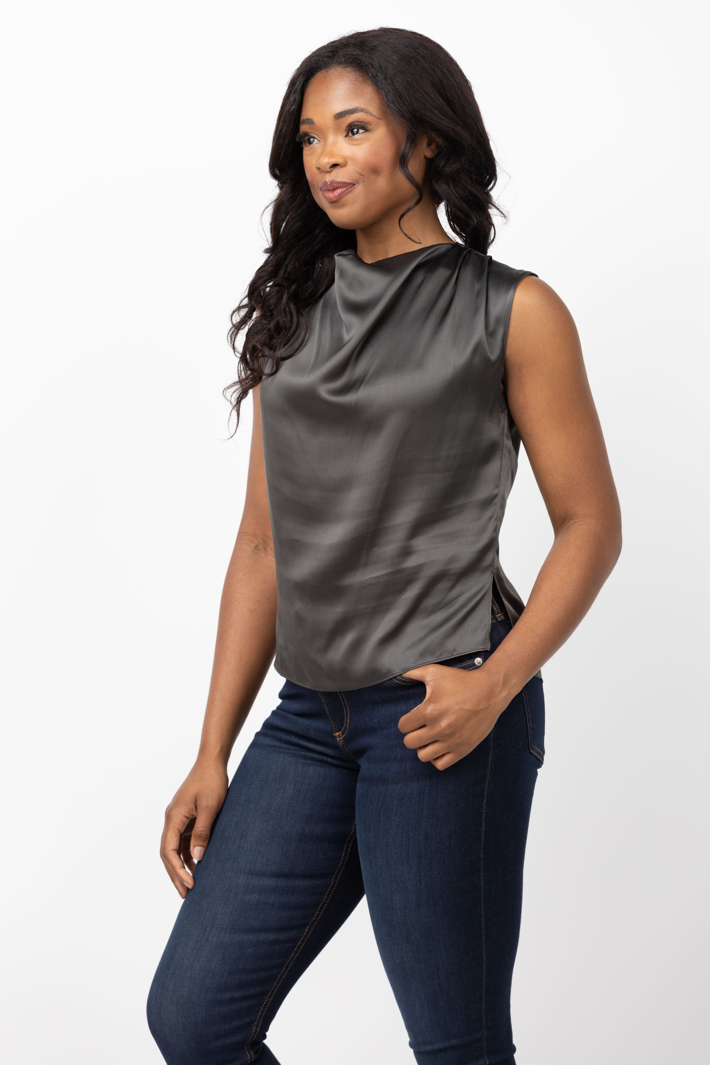 Elevate your everyday style with the Amanda Uprichard Freya Top in Zinc. Versatile and chic, this top can be effortlessly paired with jeans for a daytime look or dressed up with a leather mini skirt and kitten heels for a stunning nighttime ensemble. Perfect for any occasion, this top is a must-have in your wardrobe.