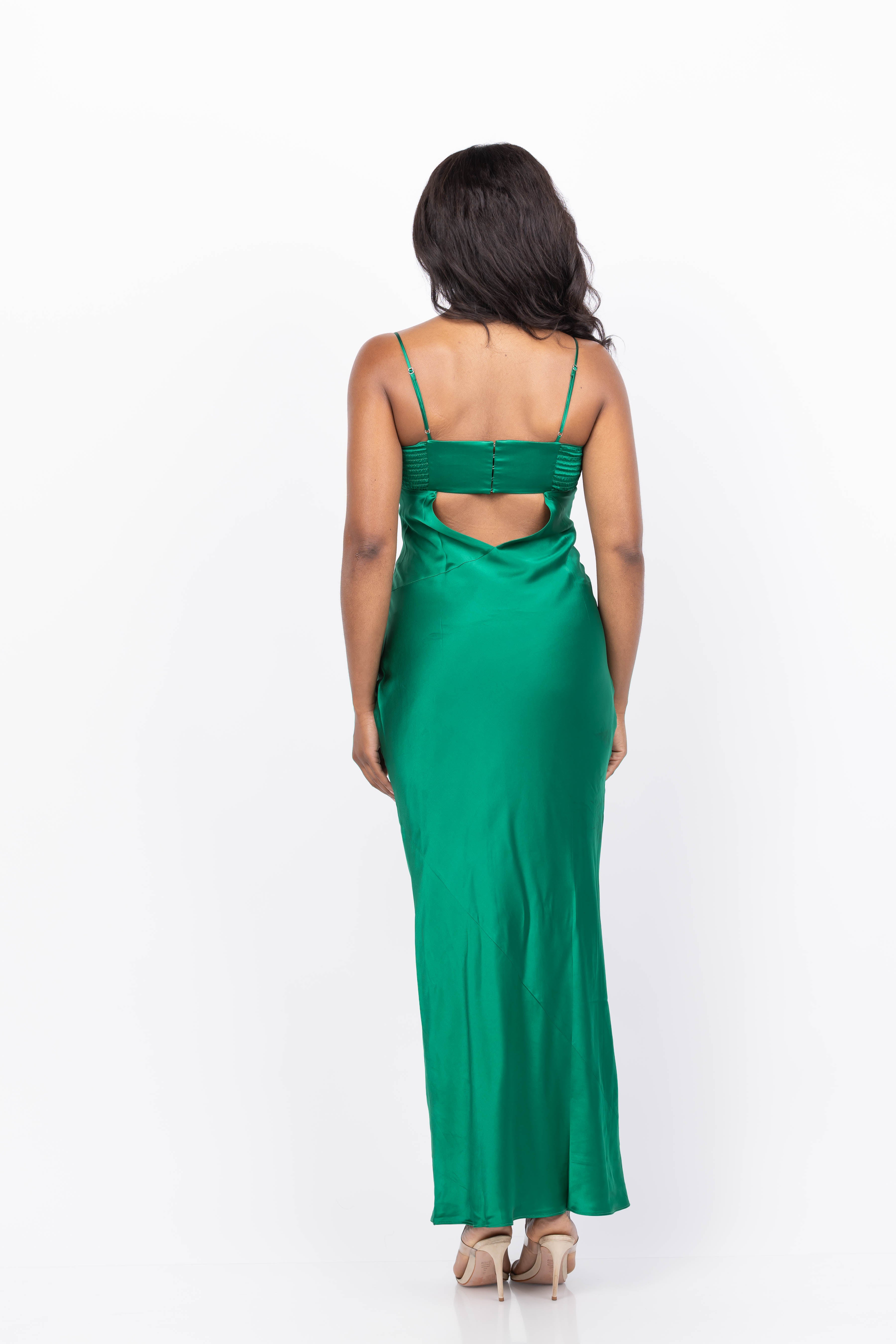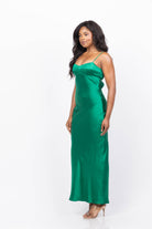 Elevate your holiday wardrobe with the Amanda Uprichard Janeiro Maxi in Green. Crafted from smooth silk and featuring delicate thin straps, this gown offers a graceful silhouette that moves effortlessly. Its vibrant green hue adds a fresh, festive touch, making it an ideal choice for special occasions and celebrations. Experience elegance and comfort combined in this timeless piece.