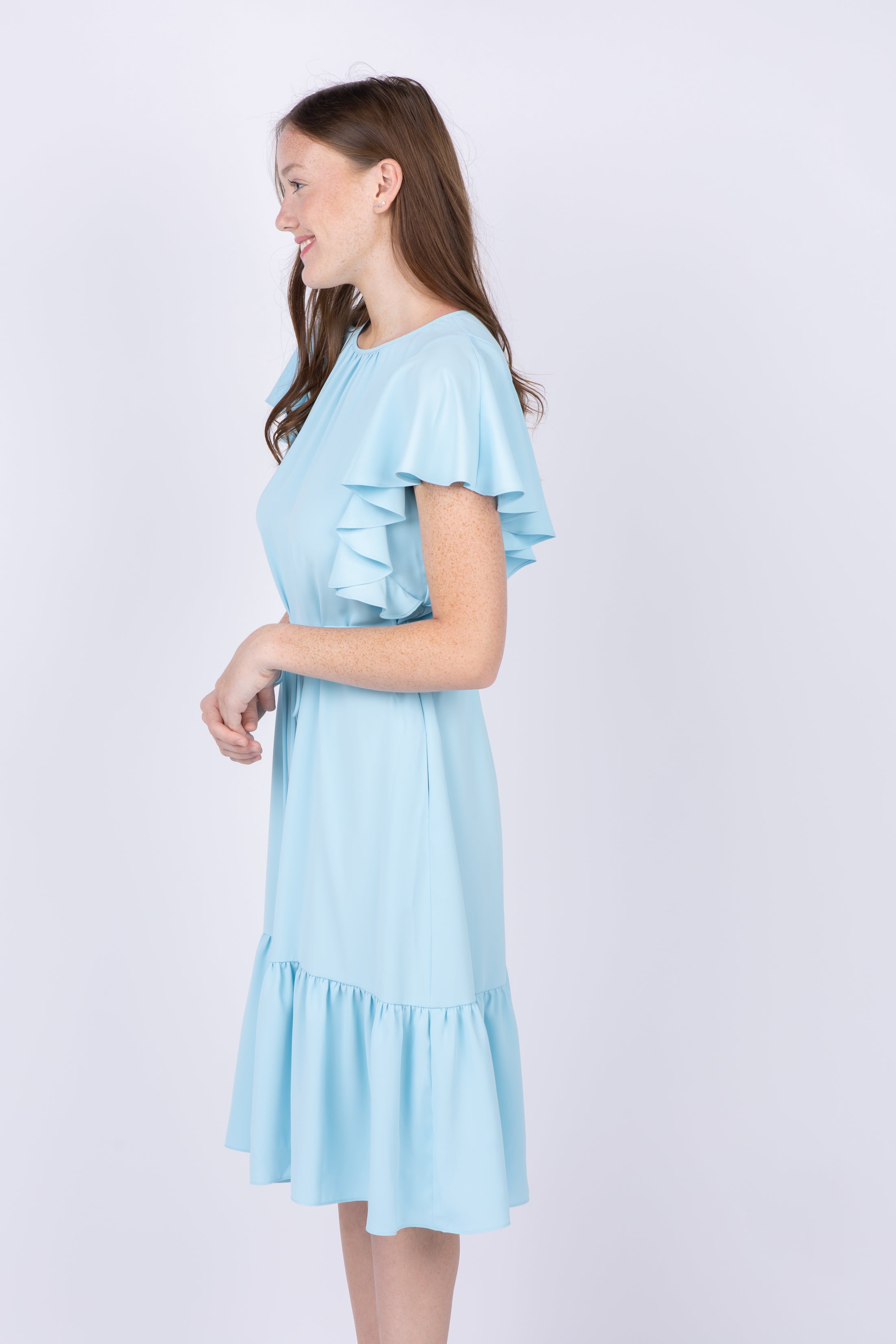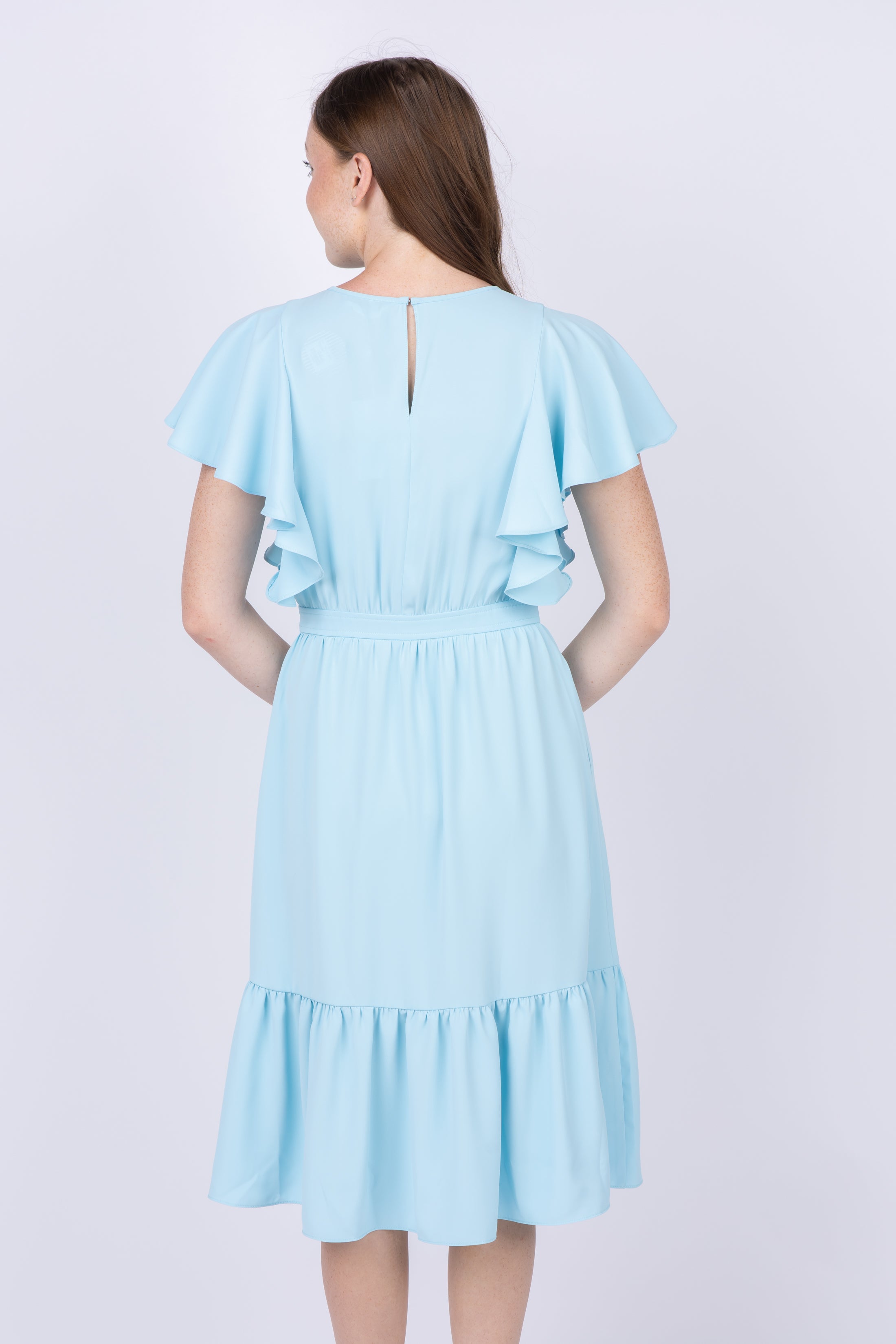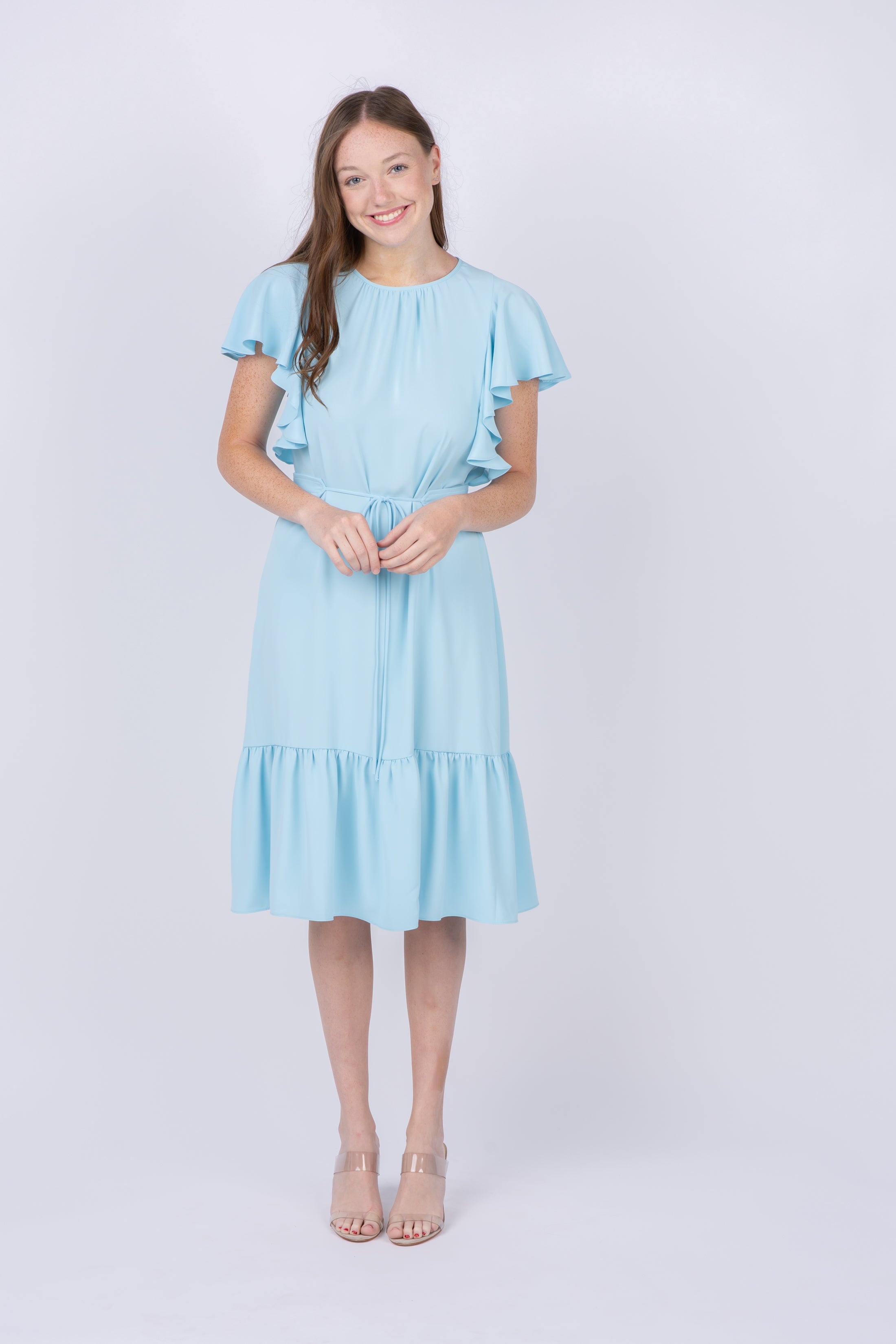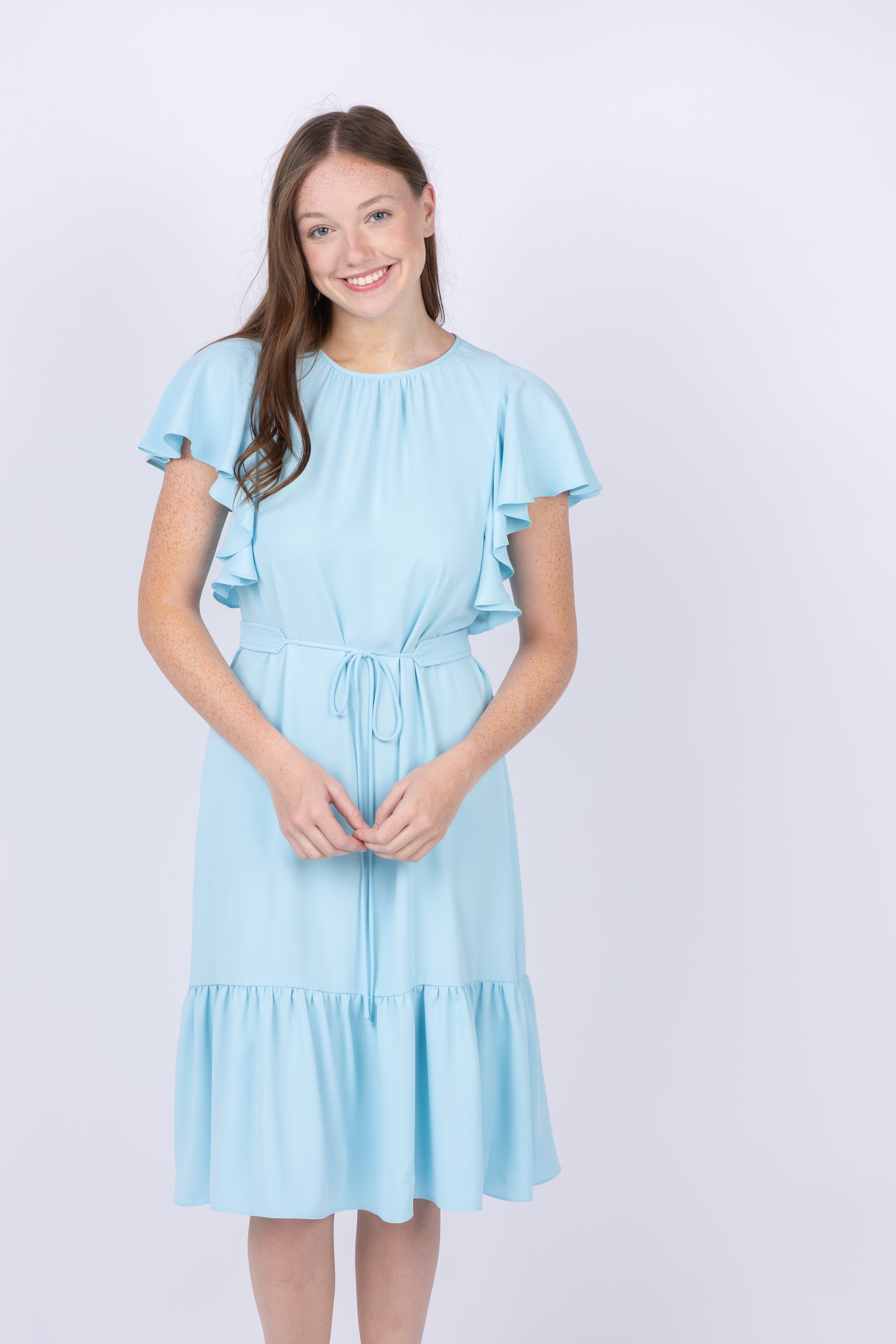 Be bold and beautiful in the Amanda Uprichard Normandy Dress! This short sleeve dress is perfect for a night out or a special occasion, and the self tie belt and ruffle draped sleeves make it truly stand out. Step into the spotlight in the stunning Ice Blue color - you deserve it!