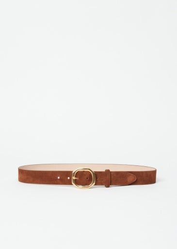 Crafted from luxurious Italian-milled suede, the Rag & Bone Audrey Belt in Umber Suede elevates any outfit with its rich texture and warm tone. Its distinctive rounded geometric buckle adds a modern touch, making it a versatile accessory that effortlessly complements both casual and dressy looks. Designed to wear with anything, this belt combines quality and style for everyday confidence.