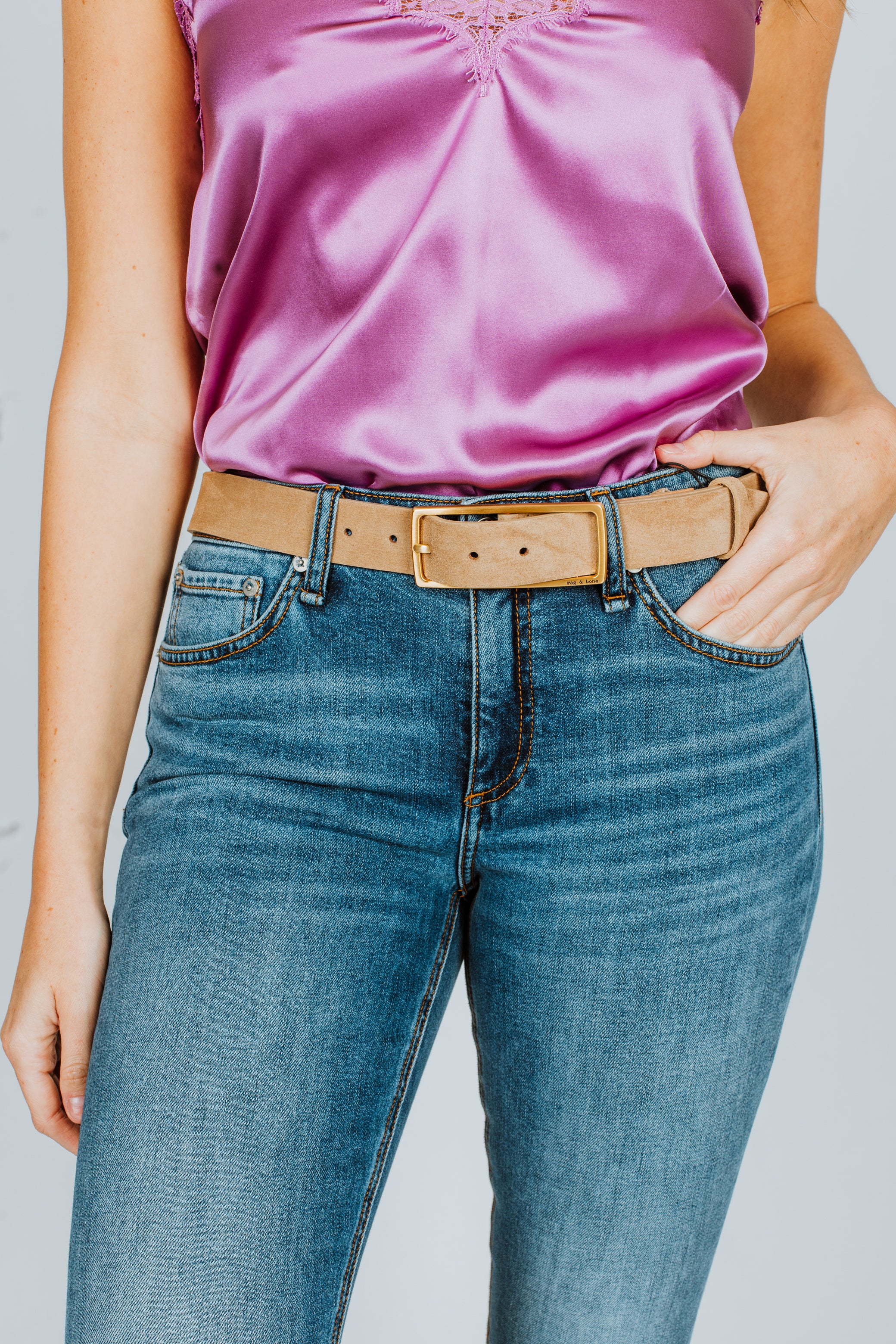 Elevate your everyday style with the Rag & Bone Rebound Belt in luxurious camel suede. This versatile accessory seamlessly transitions from casual to polished, cinching dresses, blazers, and oversized silhouettes with effortless sophistication. The soft suede construction offers a refined texture that complements any wardrobe, while the sleek design ensures it works season after season. A timeless investment piece that transforms any outfit into something special.
